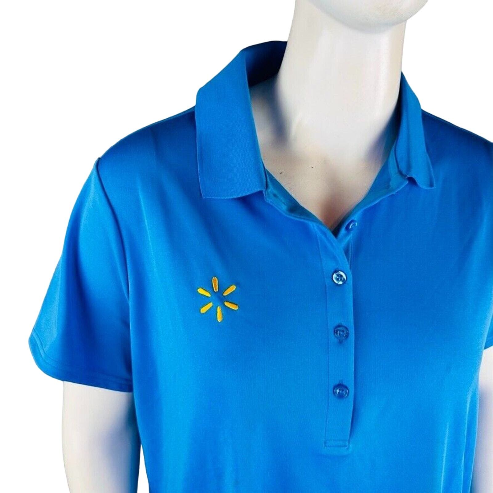 Walmart Employee Womans Sz 2X Plus Uniform Polo Shirt Blue Stretch