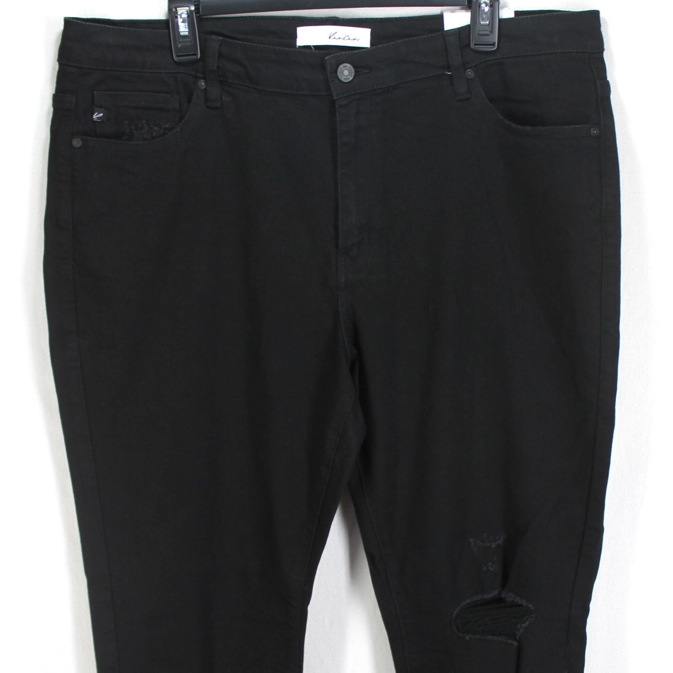 как выглядит Kancan High Rise Ankle Skinny Jeans Size 3XL Black Stretch Distressed Denim фото