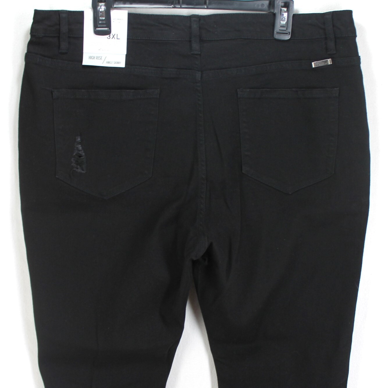 Kancan High Rise Ankle Skinny Jeans Size 3XL Black Stretch Distressed Denim