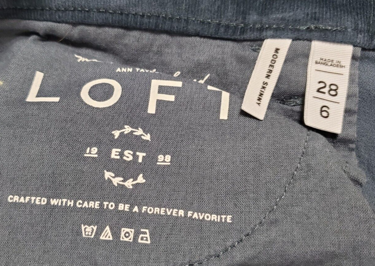 Ann Taylor Loft Modern Skinny Corduroy Pants Blue Steel Gray Size 28/6 EE-10