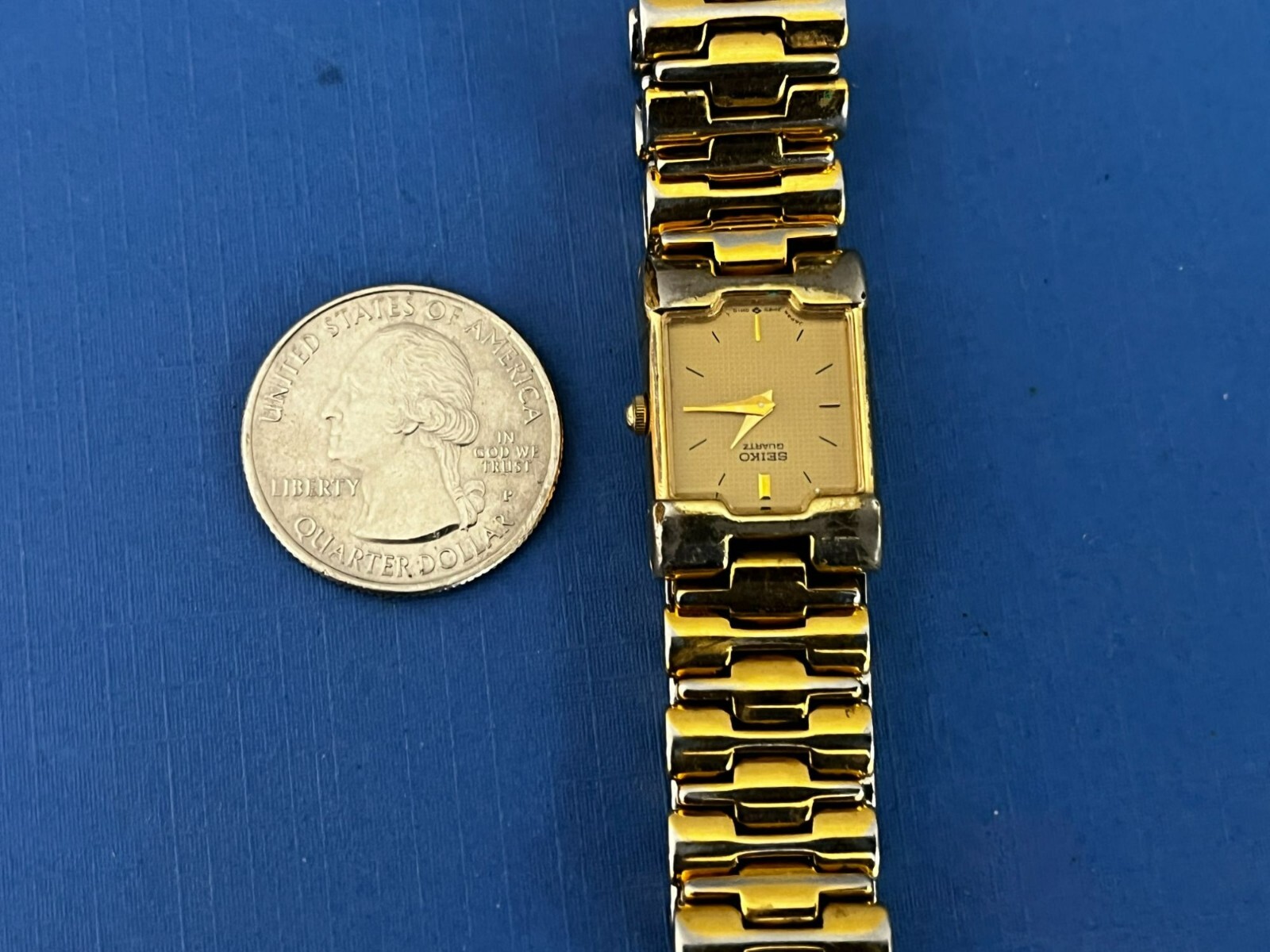как выглядит Vintage Seiko Watch Ladies Gold Tone Rectangle 2P20-5E69 New Battery фото