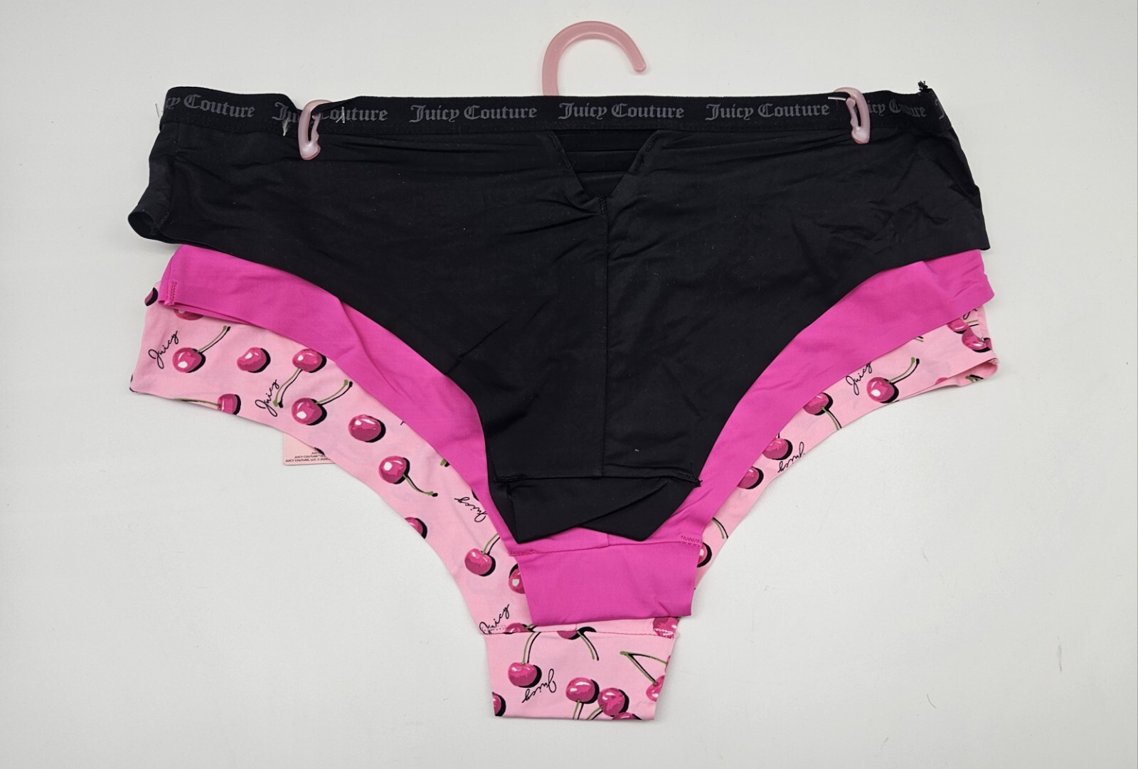 JUICY COUTURE 3 Pk Women S M L No Panty Lines Panties Black Pink Cherries Print