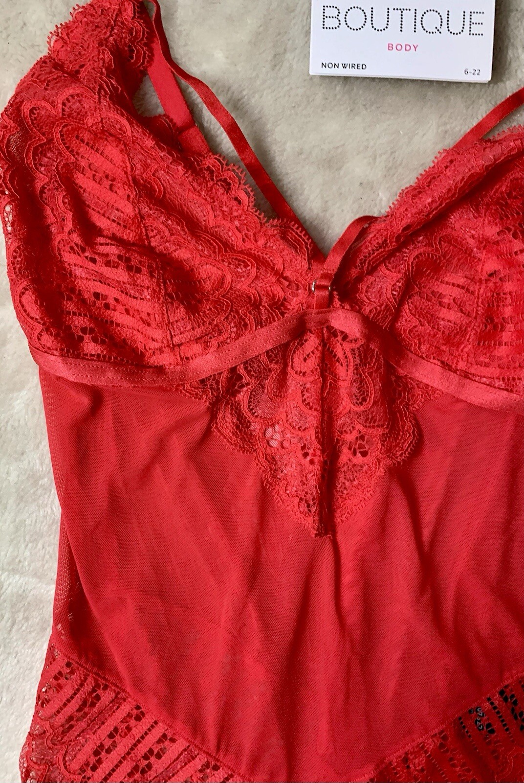 BNWT M S Boutique Body in Red Lace Mix UK 10 Non Wired