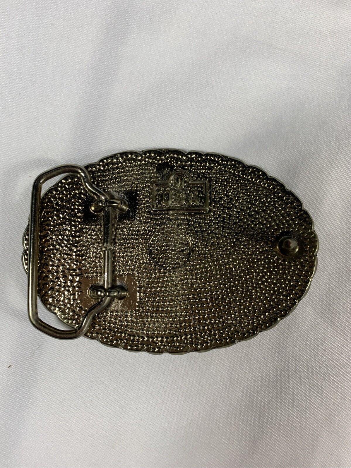 Multi Colored Metal Belt Buckle with Floral Design 3 1/4 wide