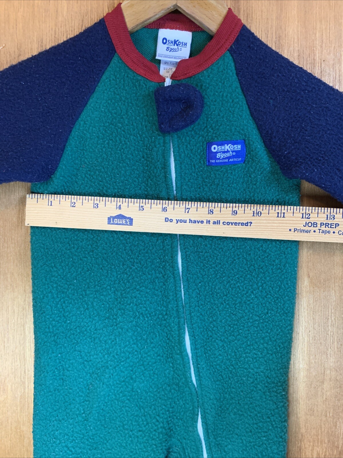 как выглядит Vintage 90s OshKosh B gosh Fleece Footie Pajamas 3T Toddler Colorblock Green фото