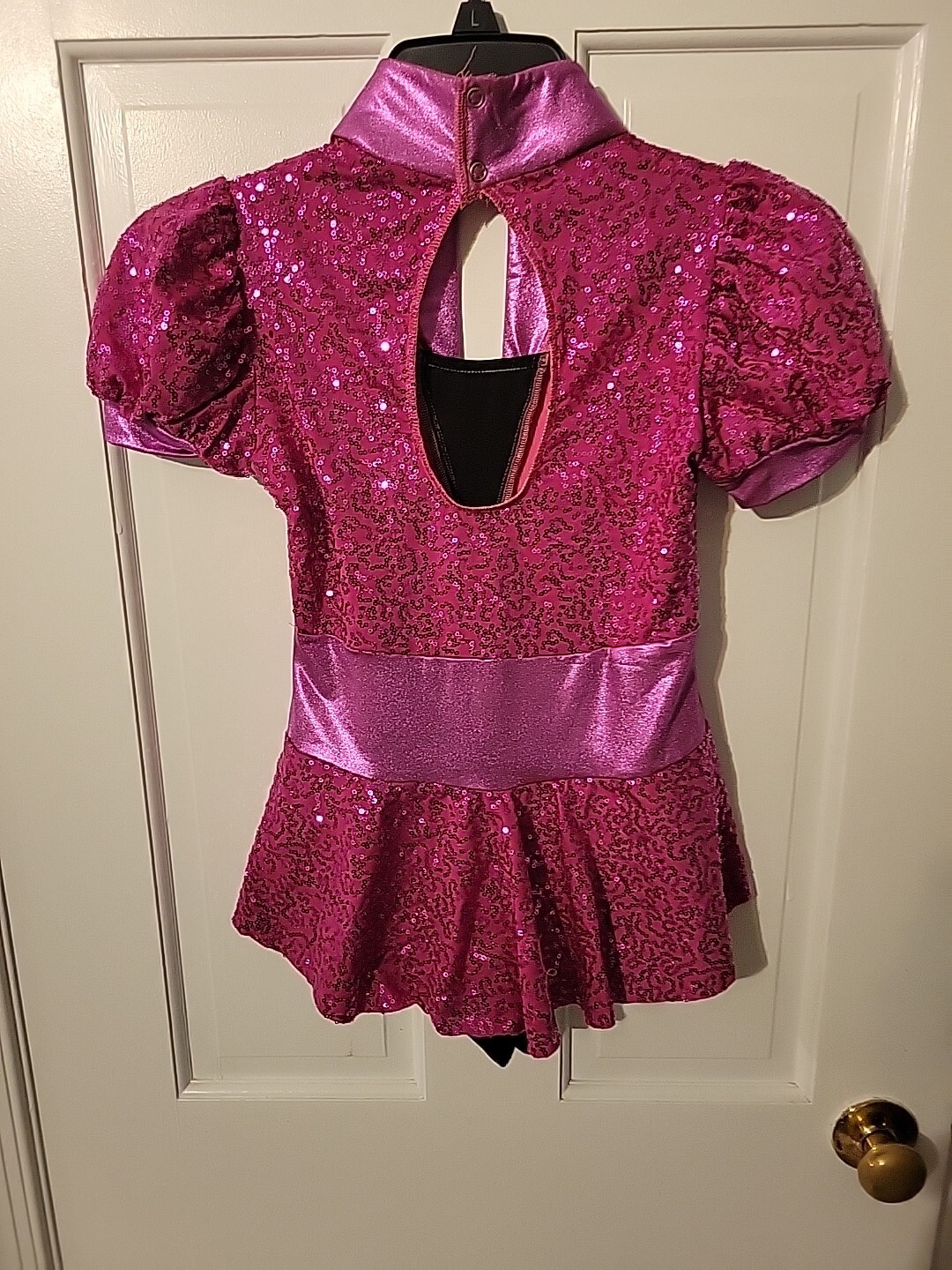 как выглядит Art Stone Dance Wear Costume, Pink sequined Black Velvet, childs Large фото