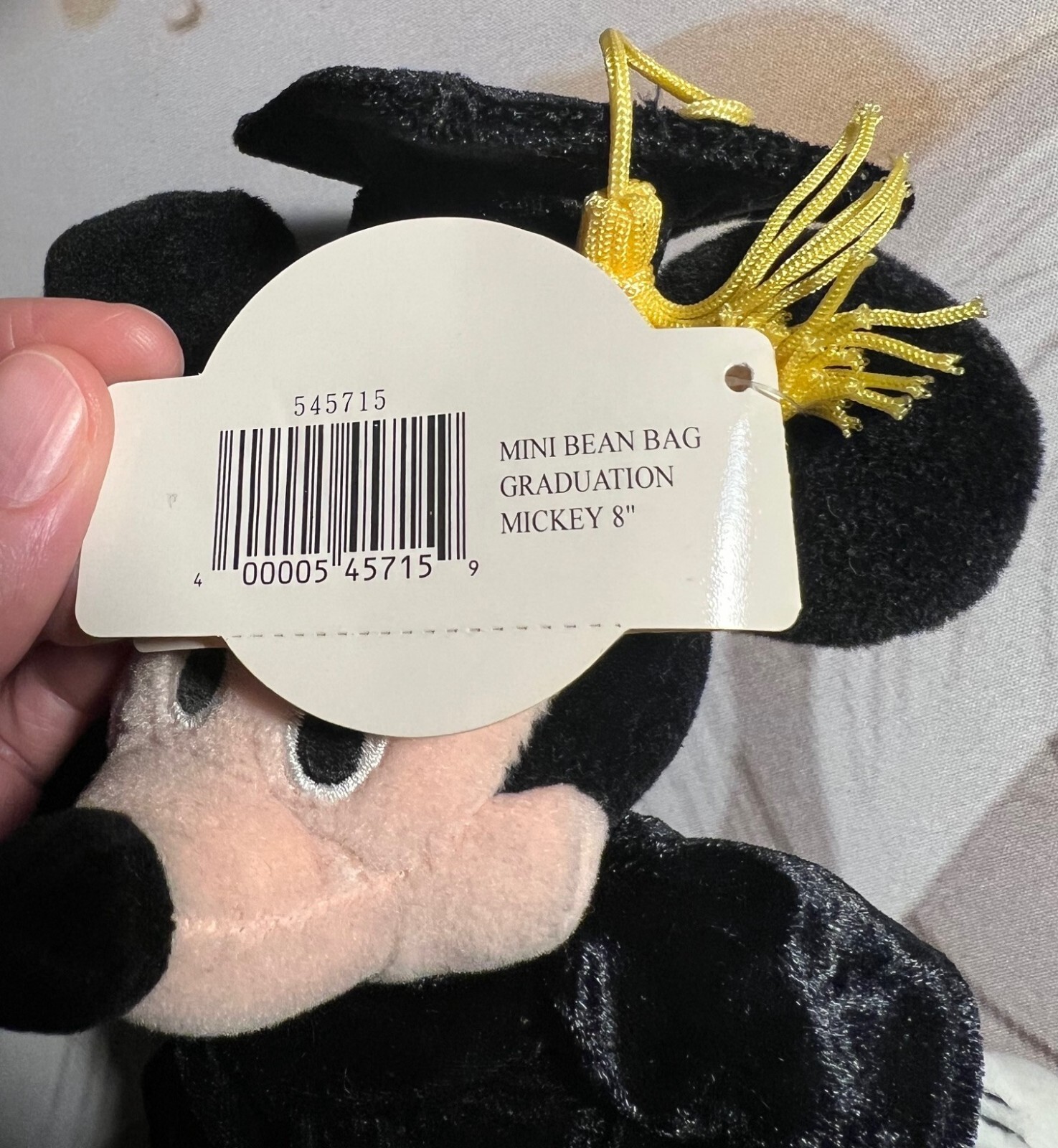 2002 Mini Bean Bag Graduation Mickey 8 Disneyland Resort w/Tag Cap Gown Diploma