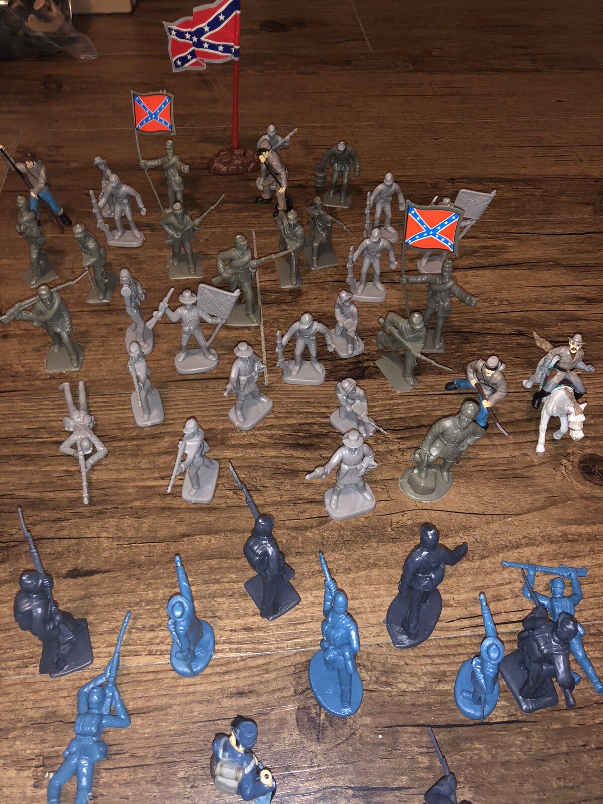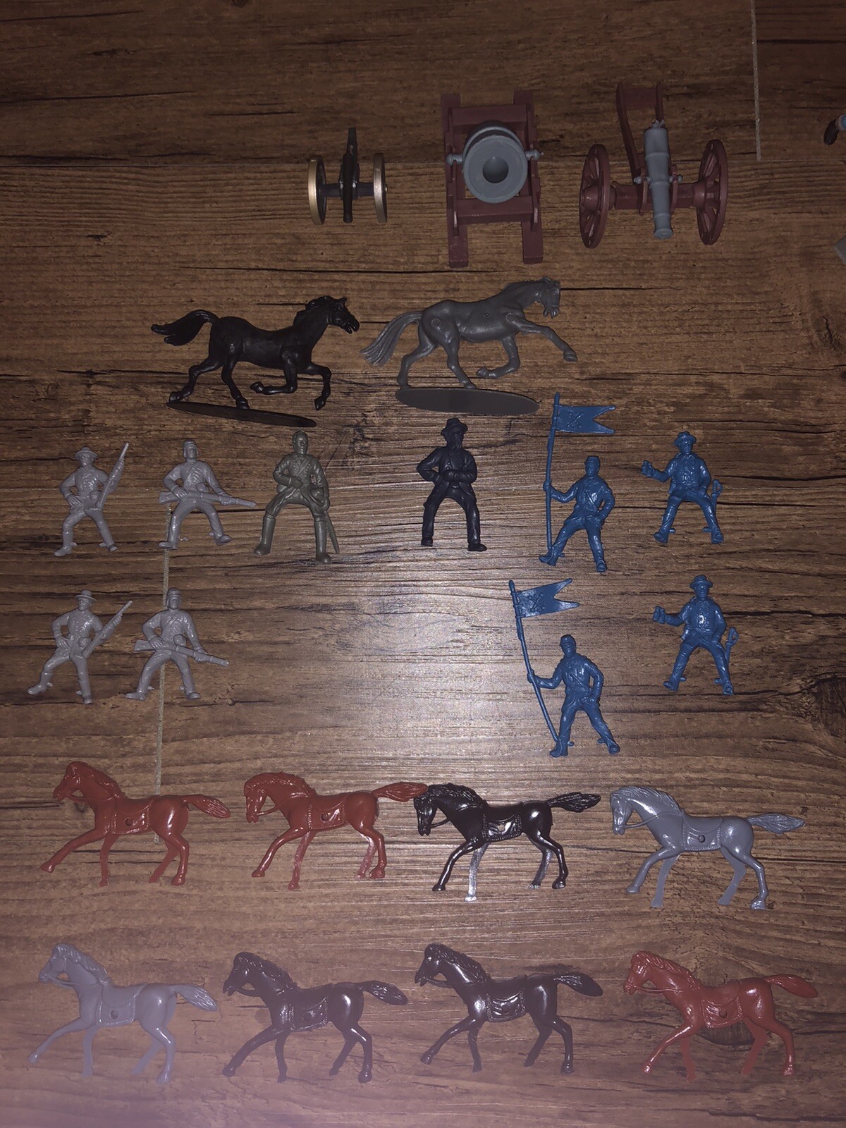 Lot 65 Civil War era vintage Plastic Toy Soldiers Gray and Blue. Cannons horses