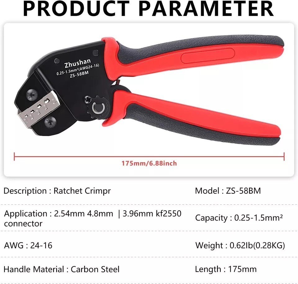 Open Barrel Terminal Wire Crimping Tool with 590PCS JST-SM Connectors Kit- 24-16