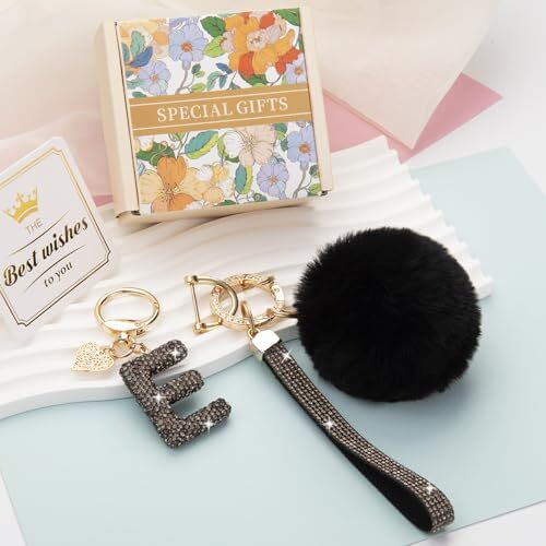 Initial Letter Keychain for Women Girl Bling Rhinestone Sparkly Bag M-black