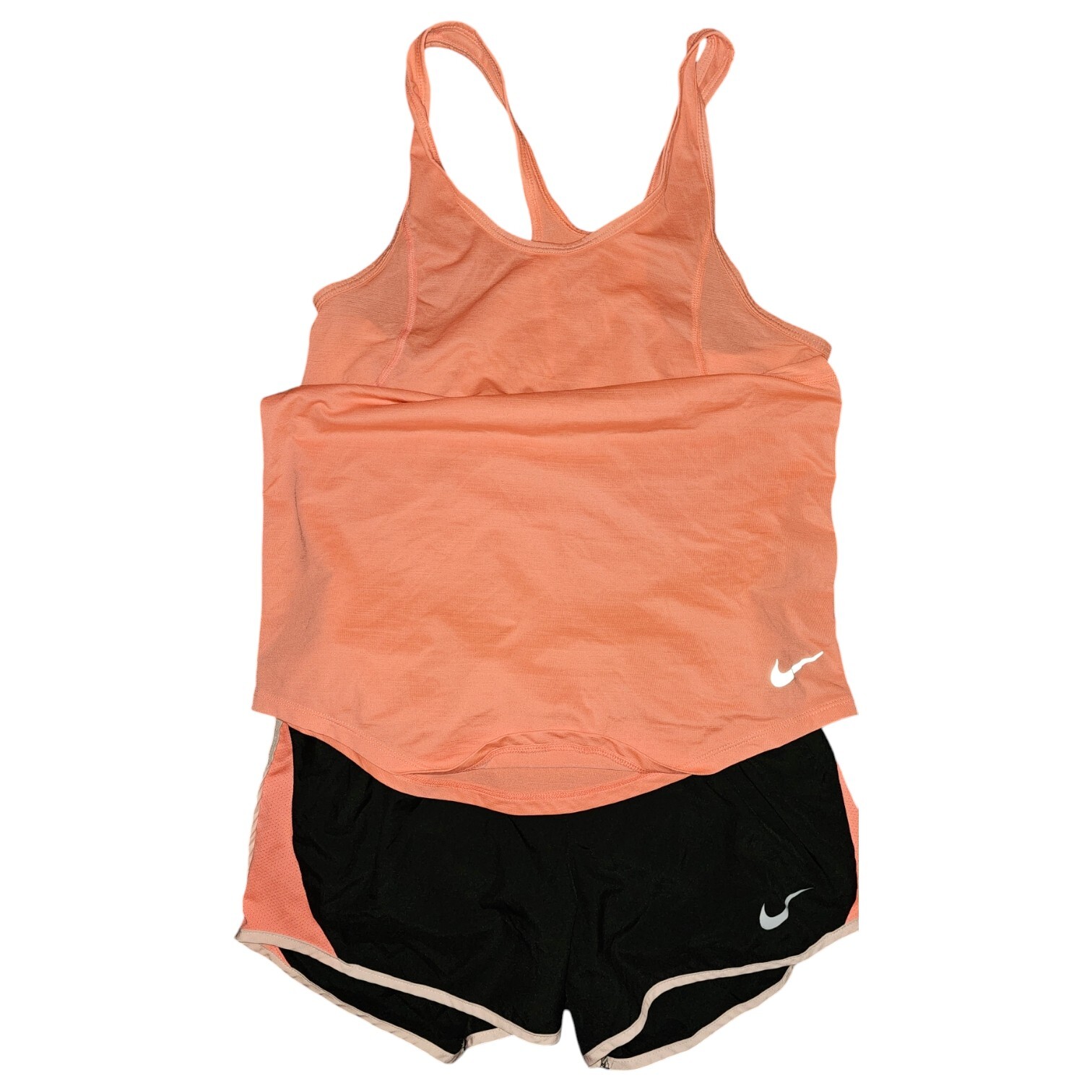 Women's 2-piece Coral Activewear Outfit Nike Dri-Fit Tank Lined Shorts Small