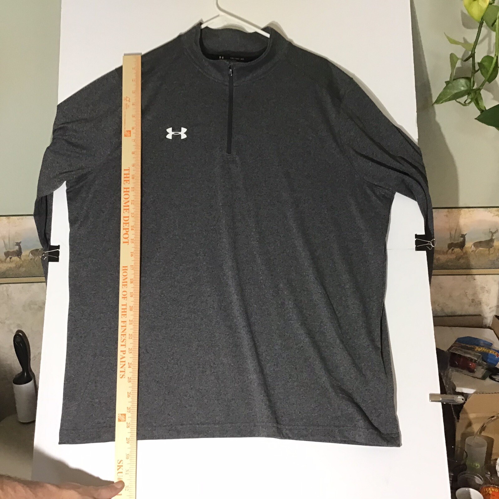 как выглядит Under Armour 1/4 Zip Pullover Mens 2X Long Sleeve Logo Loose Heatgear Gray фото