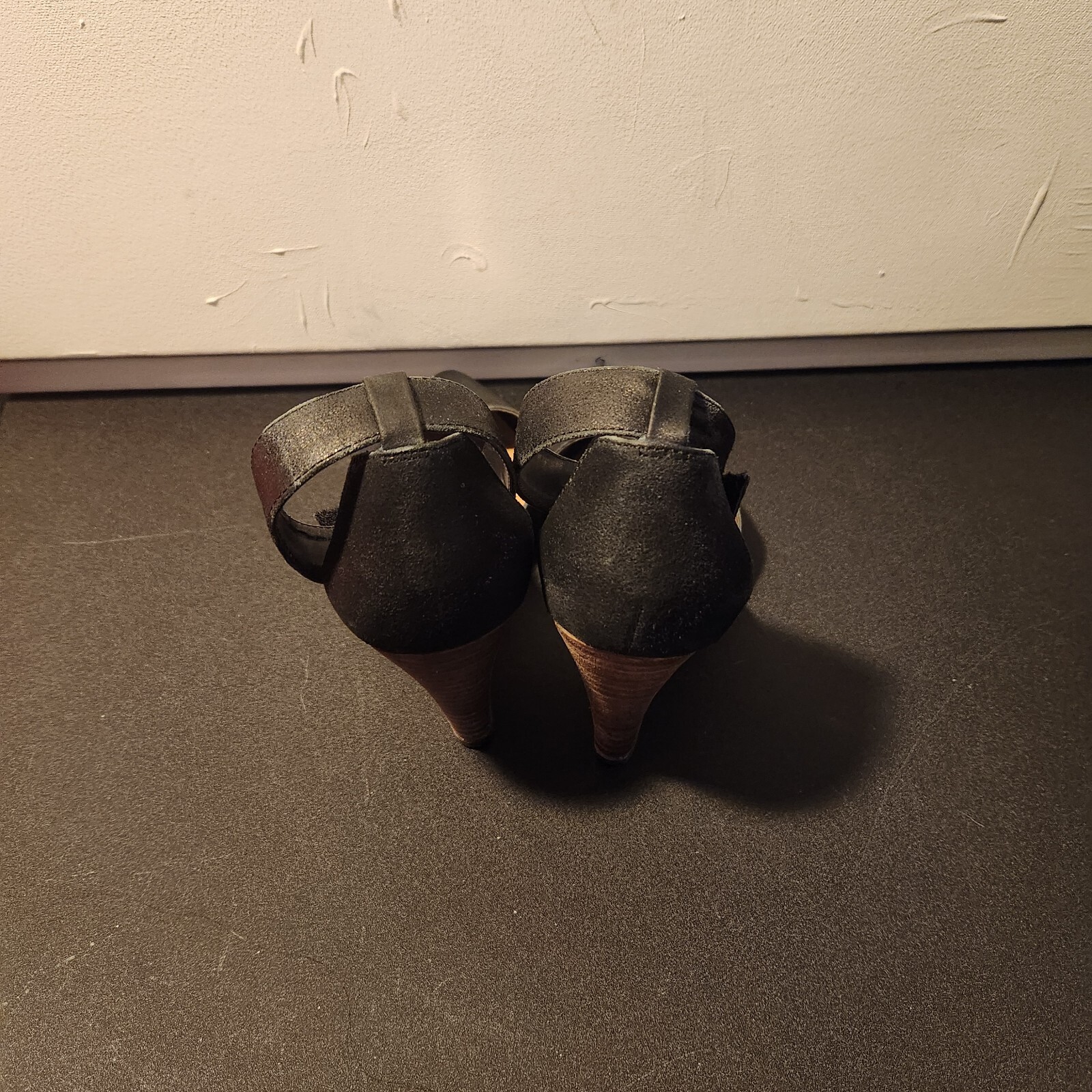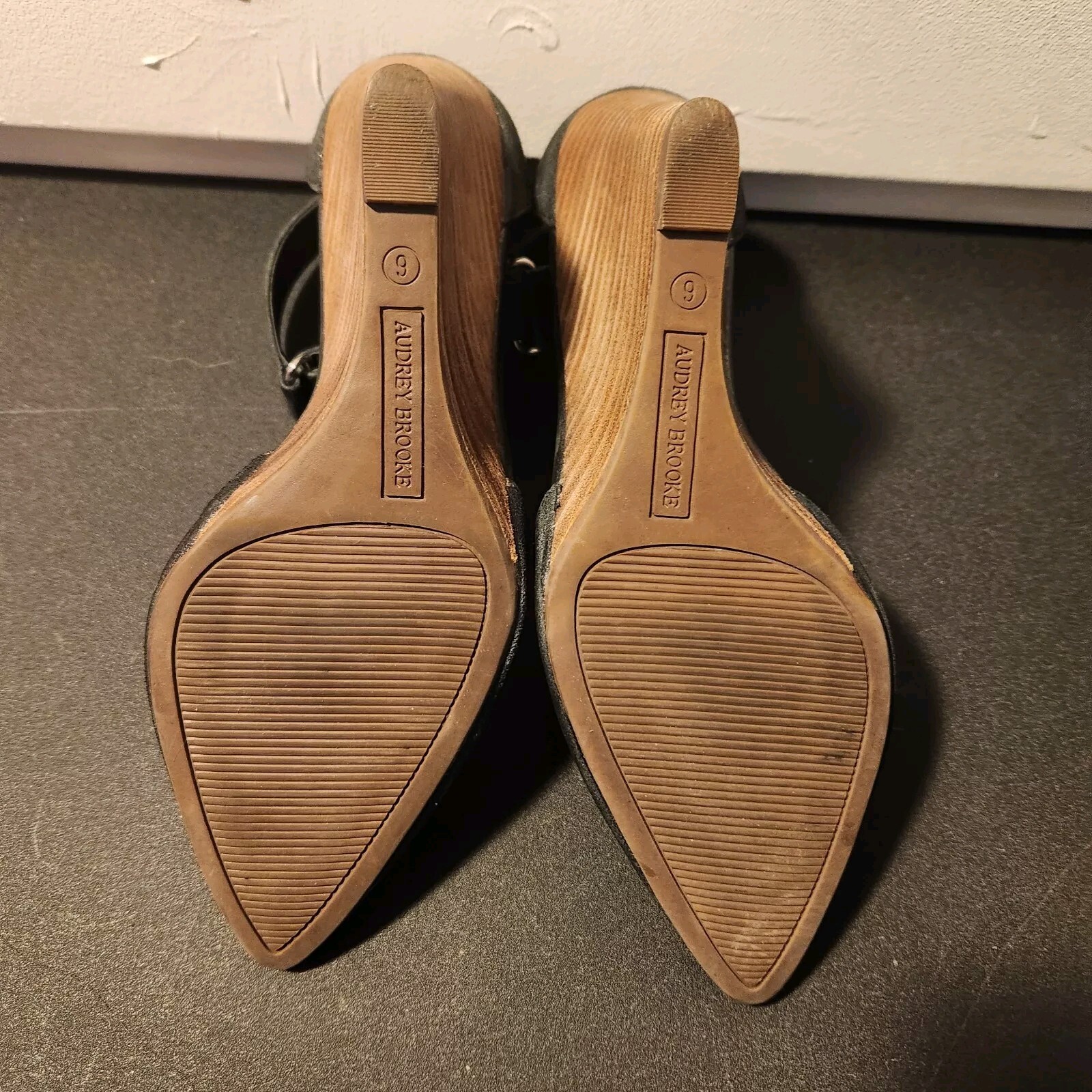 как выглядит Audrey Brooke Black Suede Wedge Heel With Ankle Wrap Strap Shoe Sz 6 фото