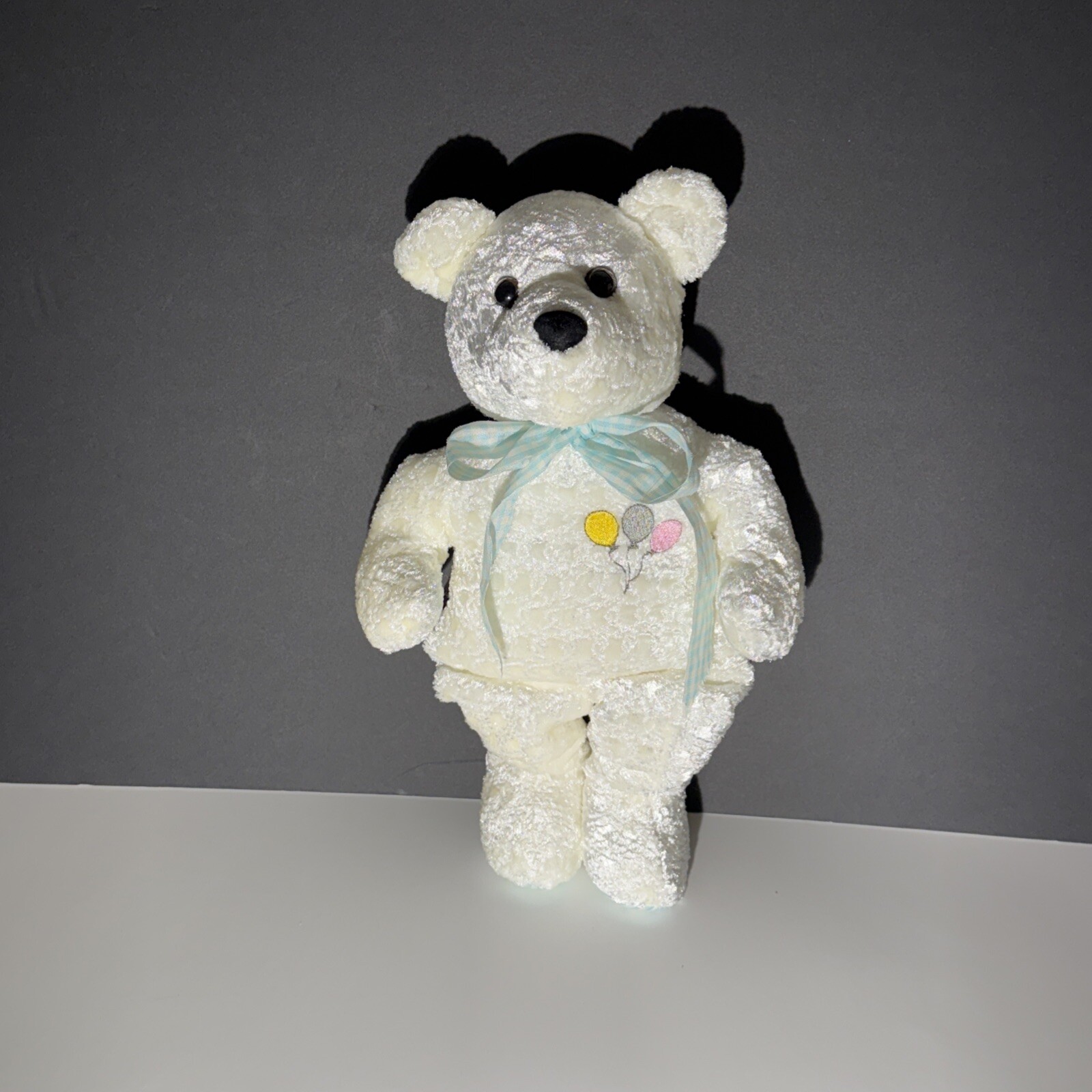 как выглядит Vintage Salvinos Baby Bammers White Bean Bag Bear Plush Gingham Bow 15" фото