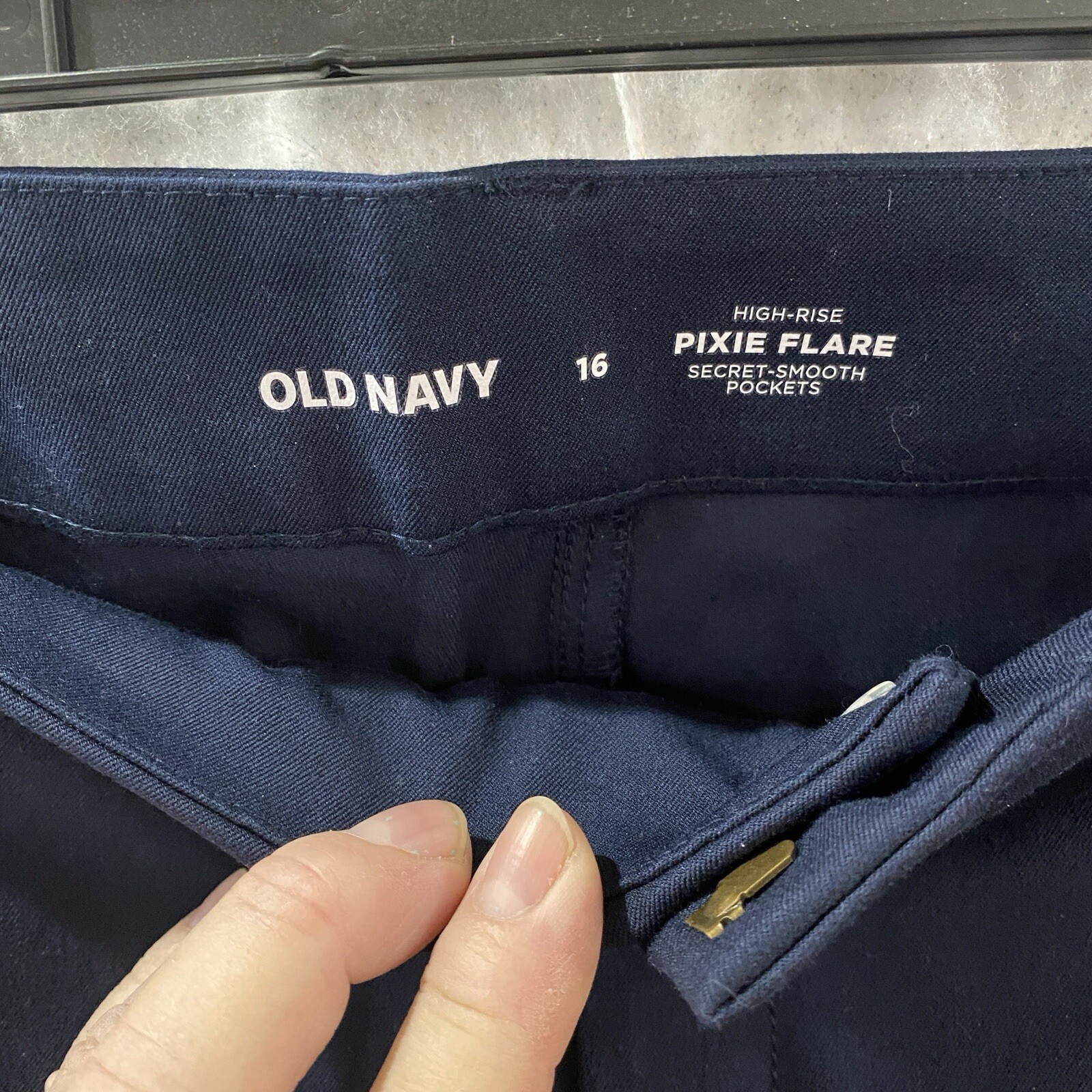 как выглядит Old Navy Pixie Flare High Rise Pants Womans 16 Blue Secret Smooth Pockets фото