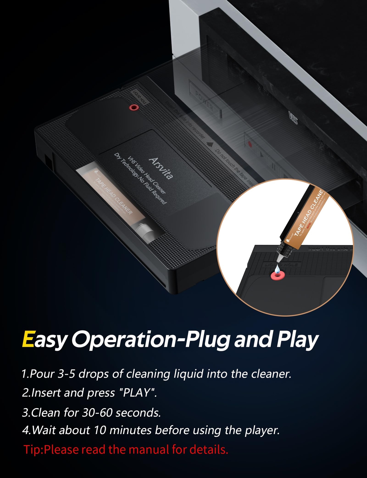 VHS/VCR Head Cleaner Tape Video Head Cleaning Kit for VHS/VCR Players Wet Typ...