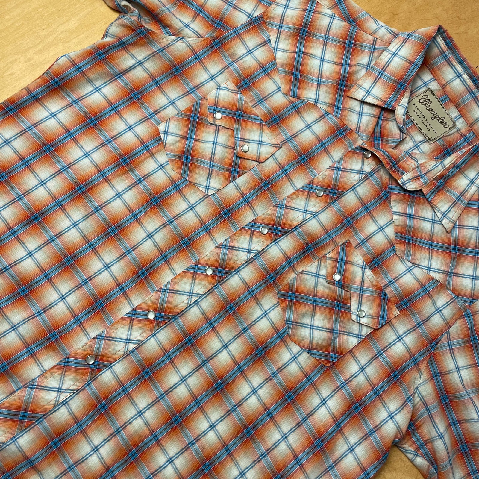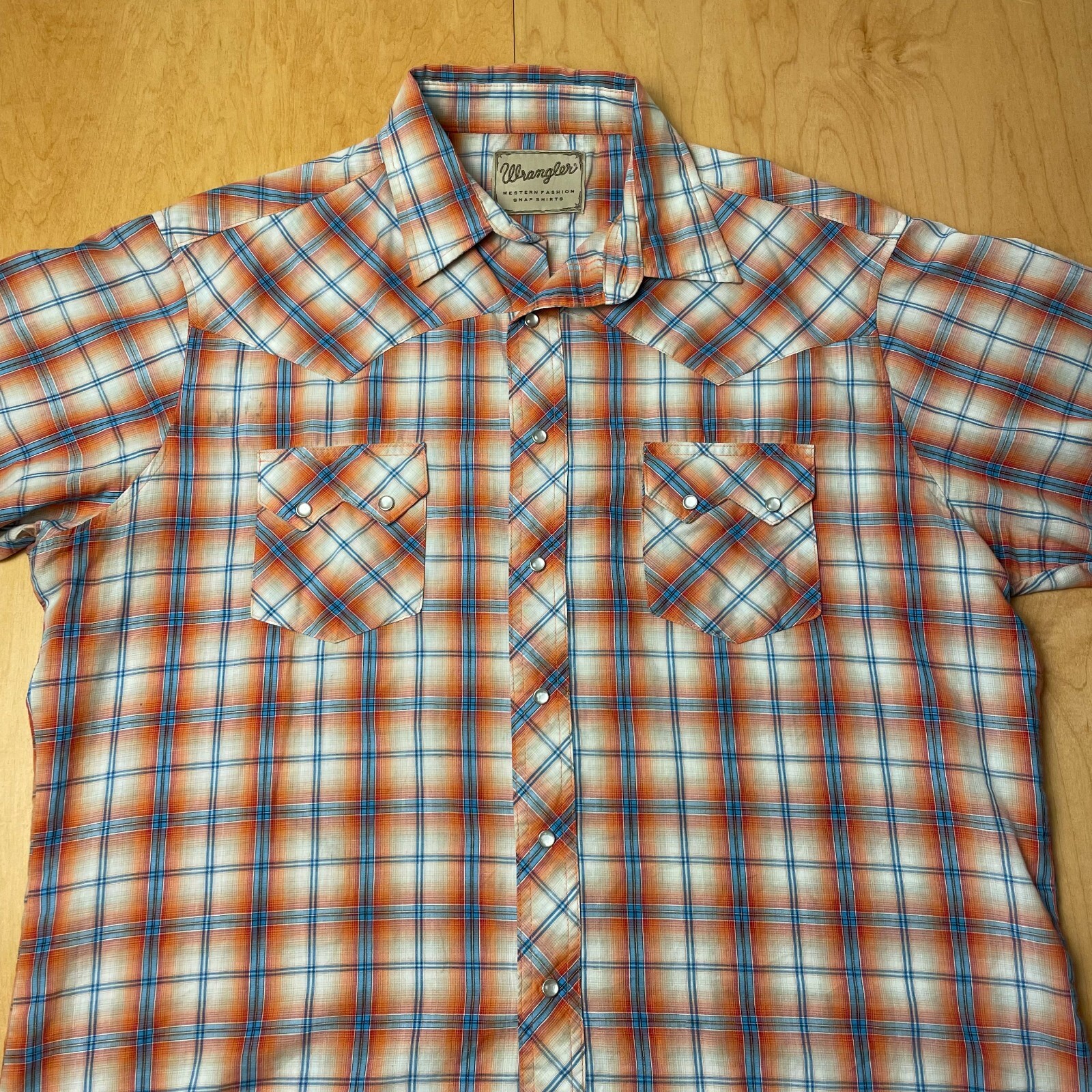 как выглядит Vintage Wrangler Pearl Snap Multicolor Plaid 2XL Short Sleeve Western Shirt фото