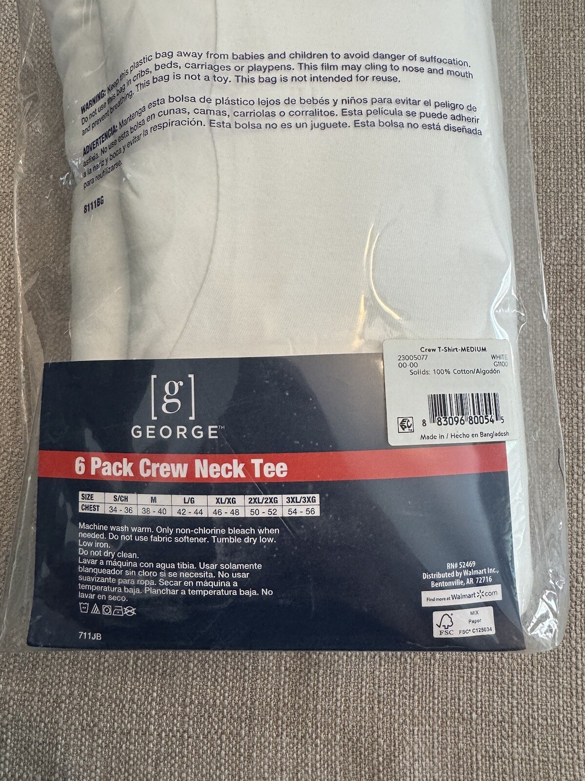 George Men s Crew T-Shirts 6-Pack Tag Free Size Medium White
