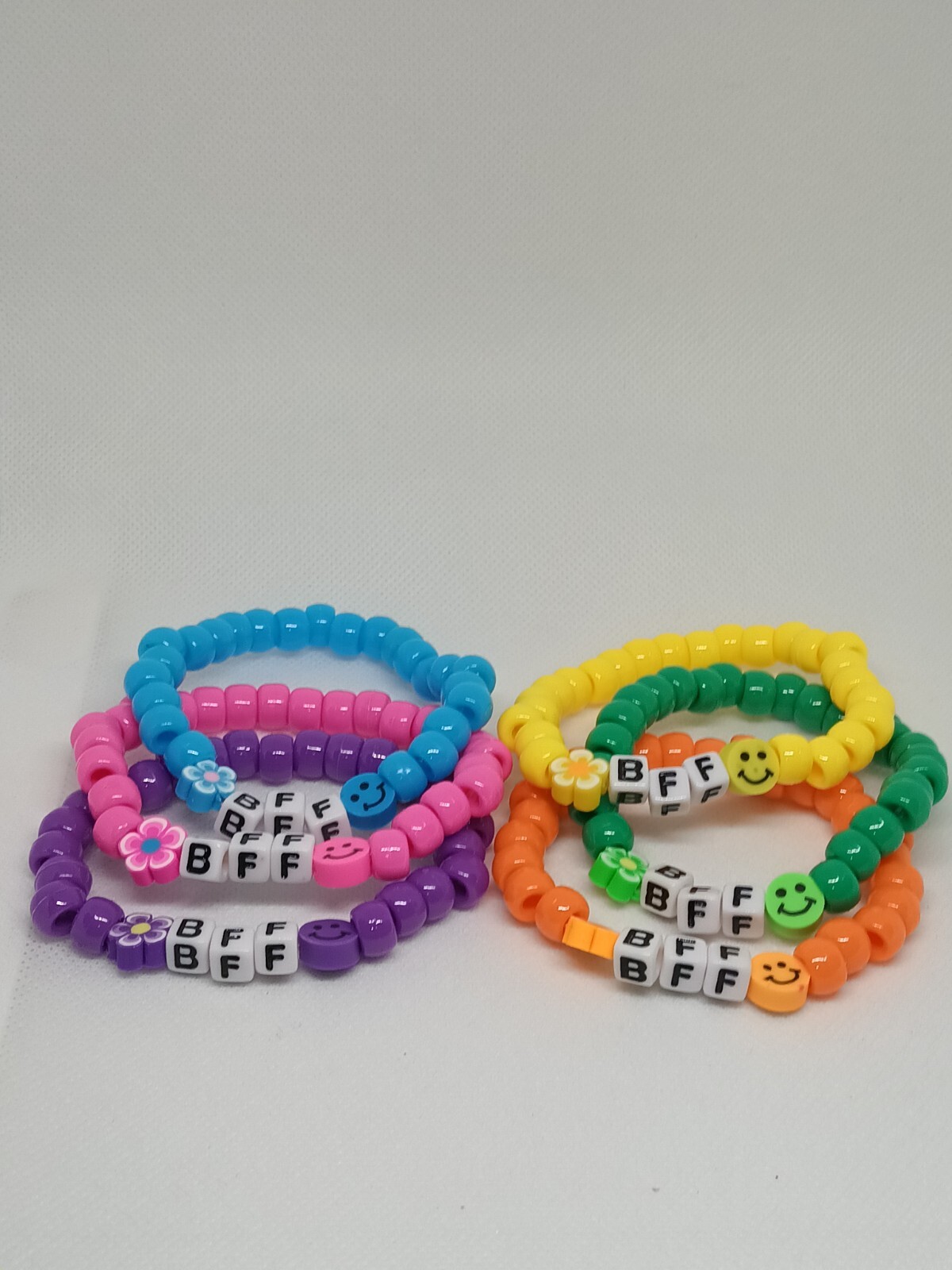 Multi Colors BFF Pony Beads Stretchy Bracelet Set Of Six 7.5