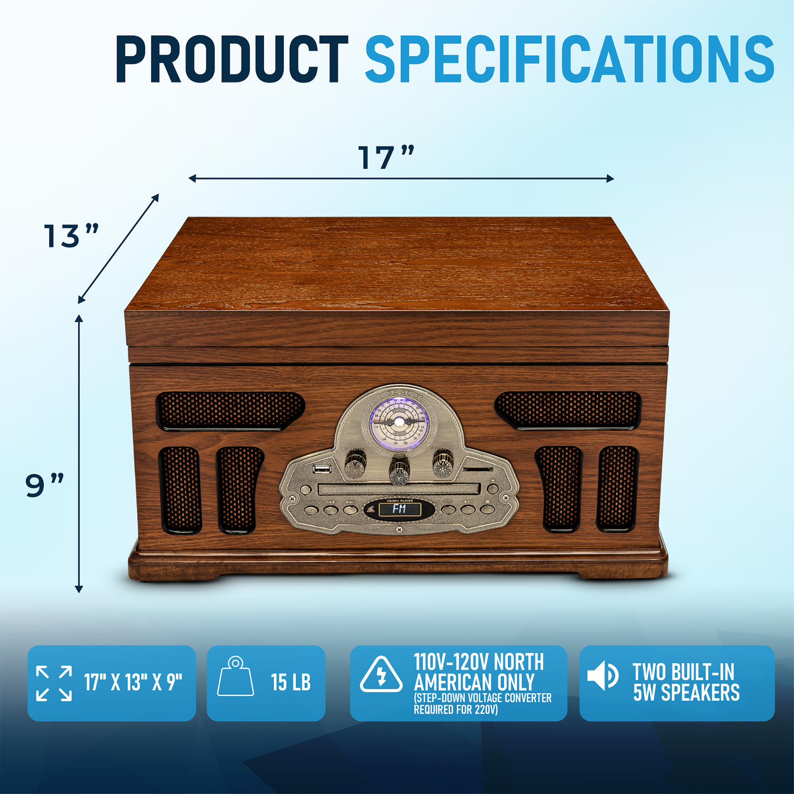 SoundBeast All-in-One Turntable - Record Player Bluetooth CD Cassette Tape FM