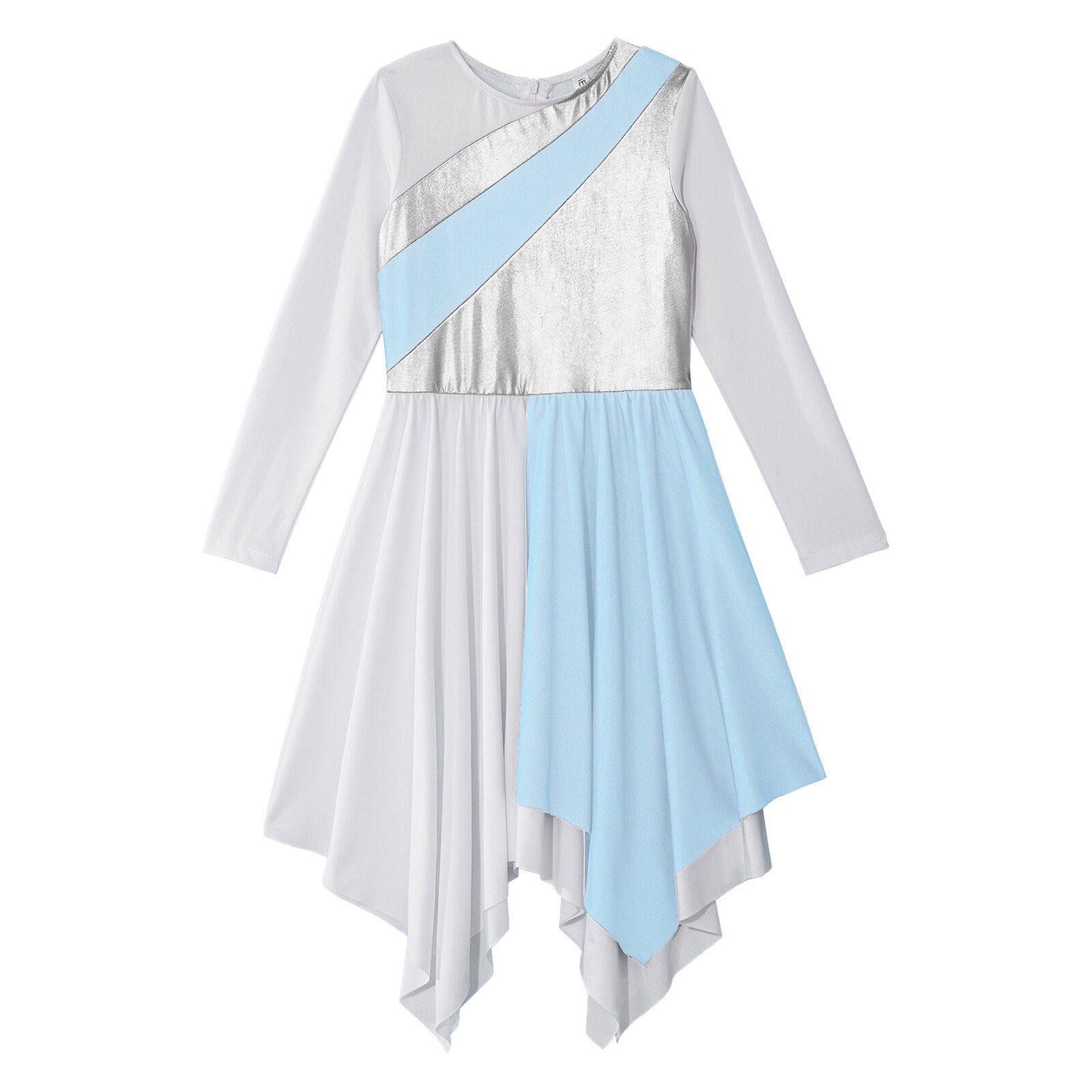 Girls Worship Costume Liturgical Praise Dance Dress Color Block Church Gown