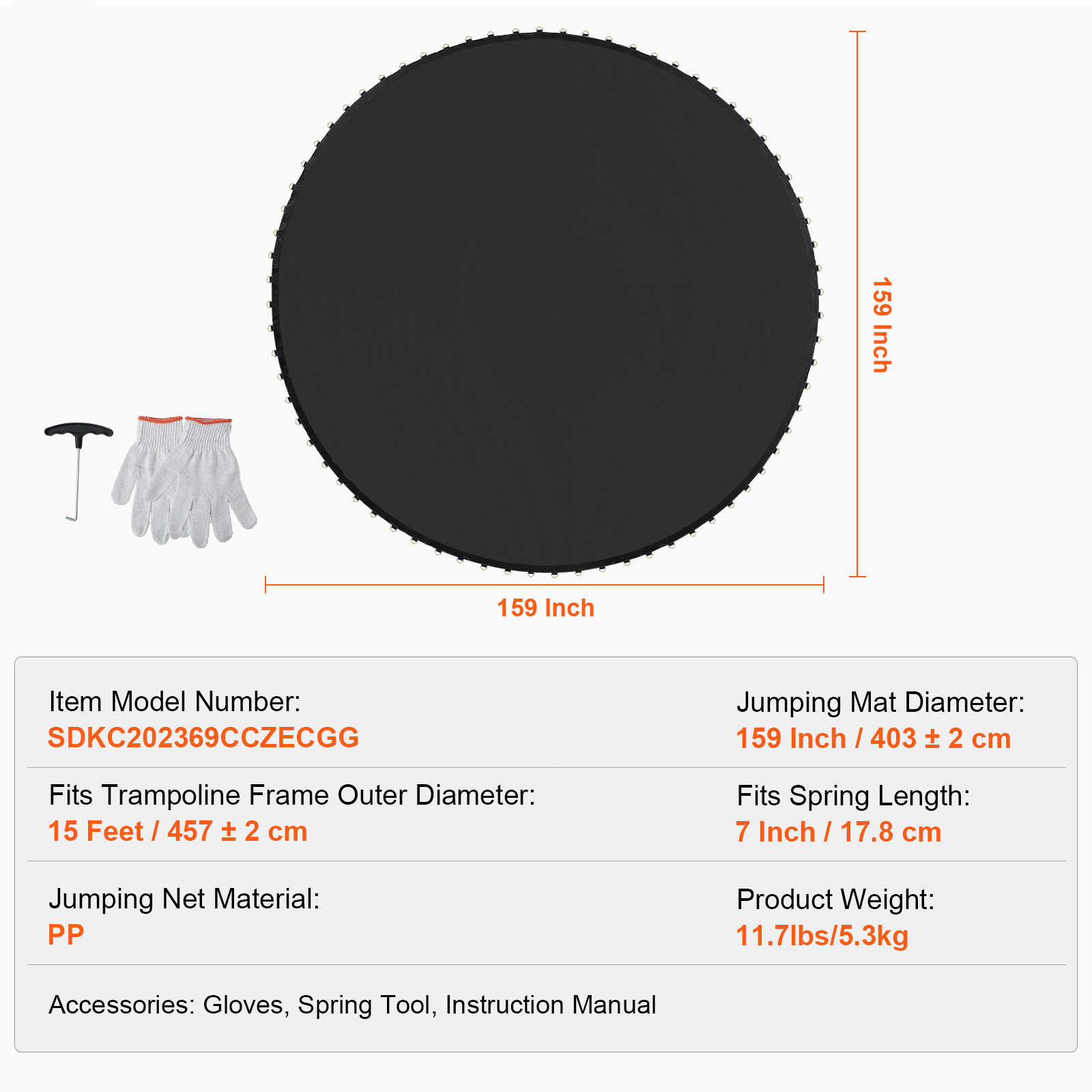 Fits Trampoline Frame Outer Diameter: 12/13/14/15 ft / 365/396/426/457 cm