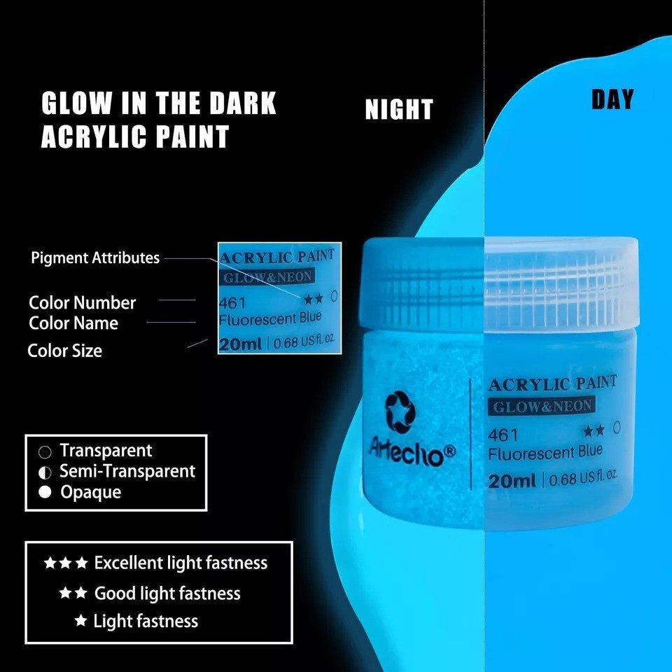 Glow in the Dark Paint - Set of 8 Colors 20 ml / 0.7 oz Acrylic Paint...