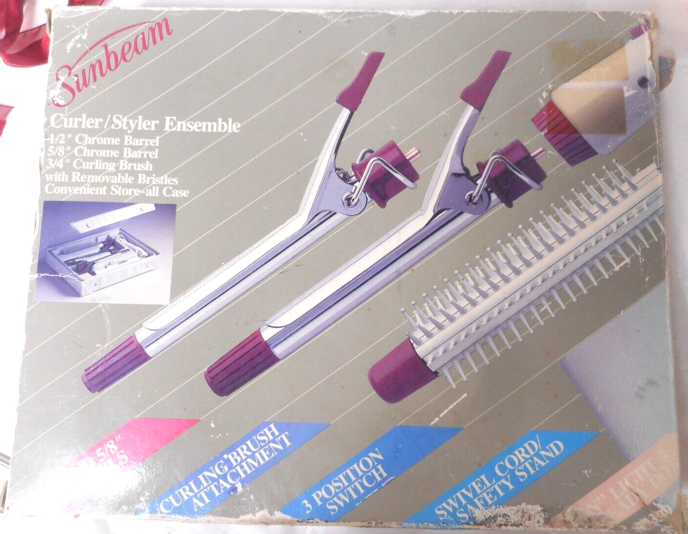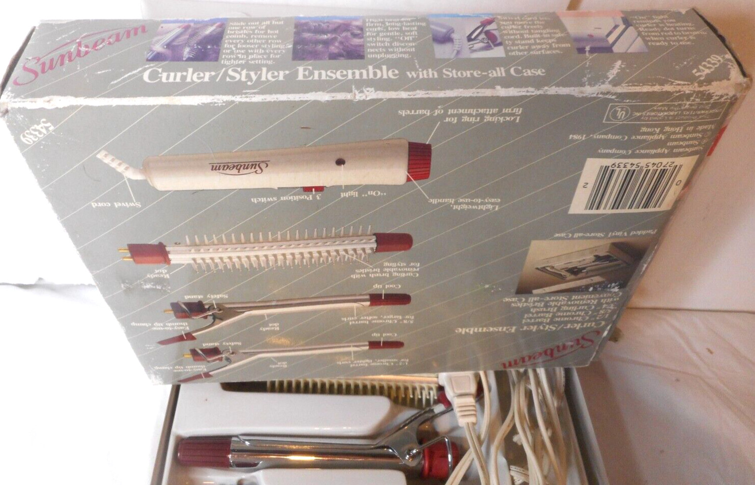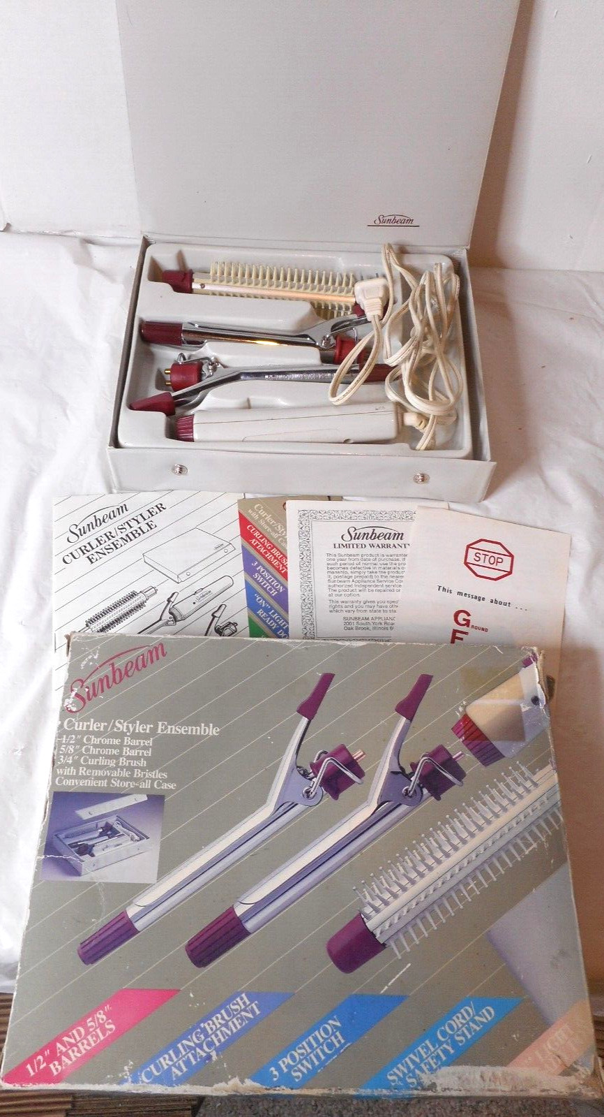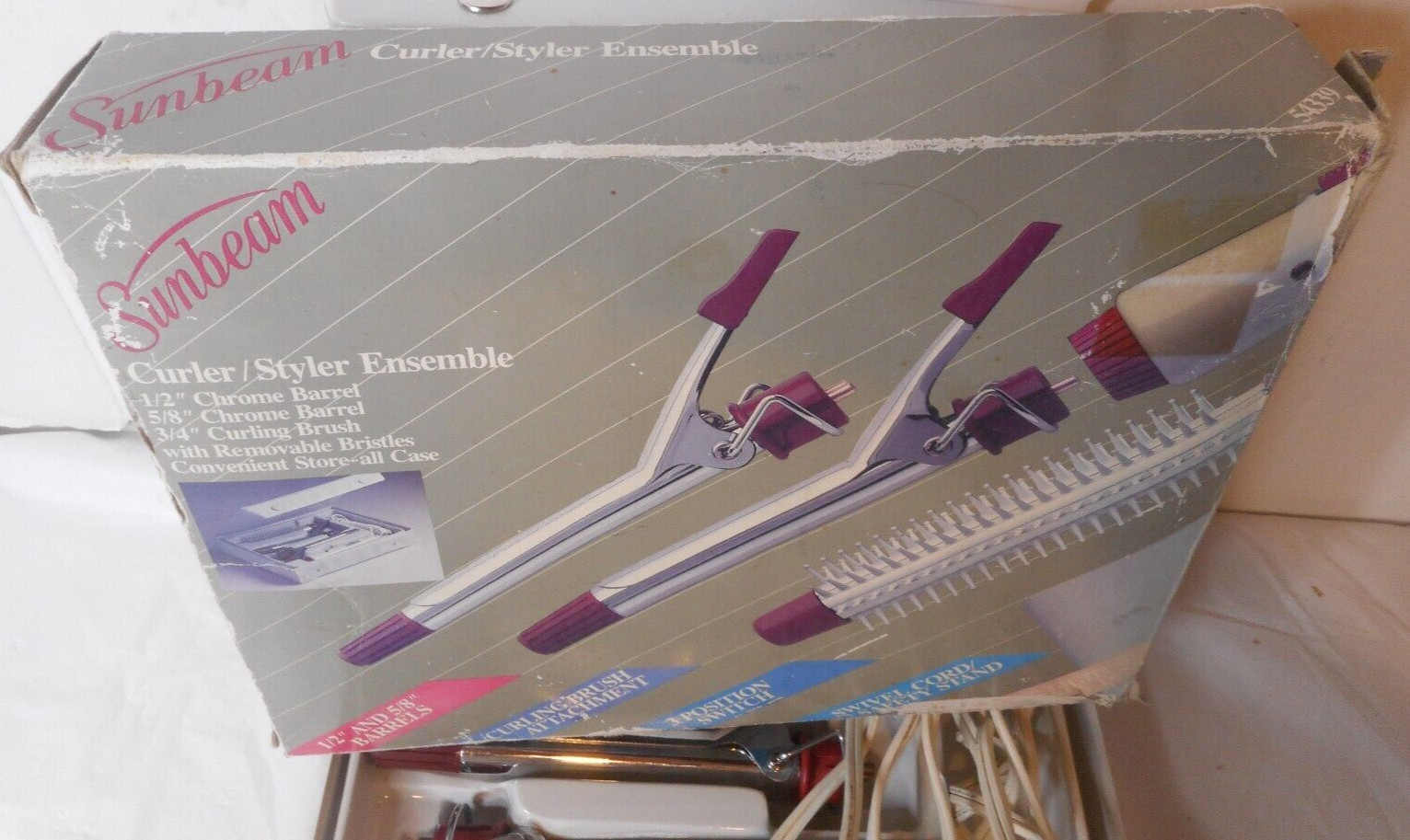 1984 Sunbeam 54339 Curler Styler Ensemble 2 barrels 1 bristle 1 Handle Case Box