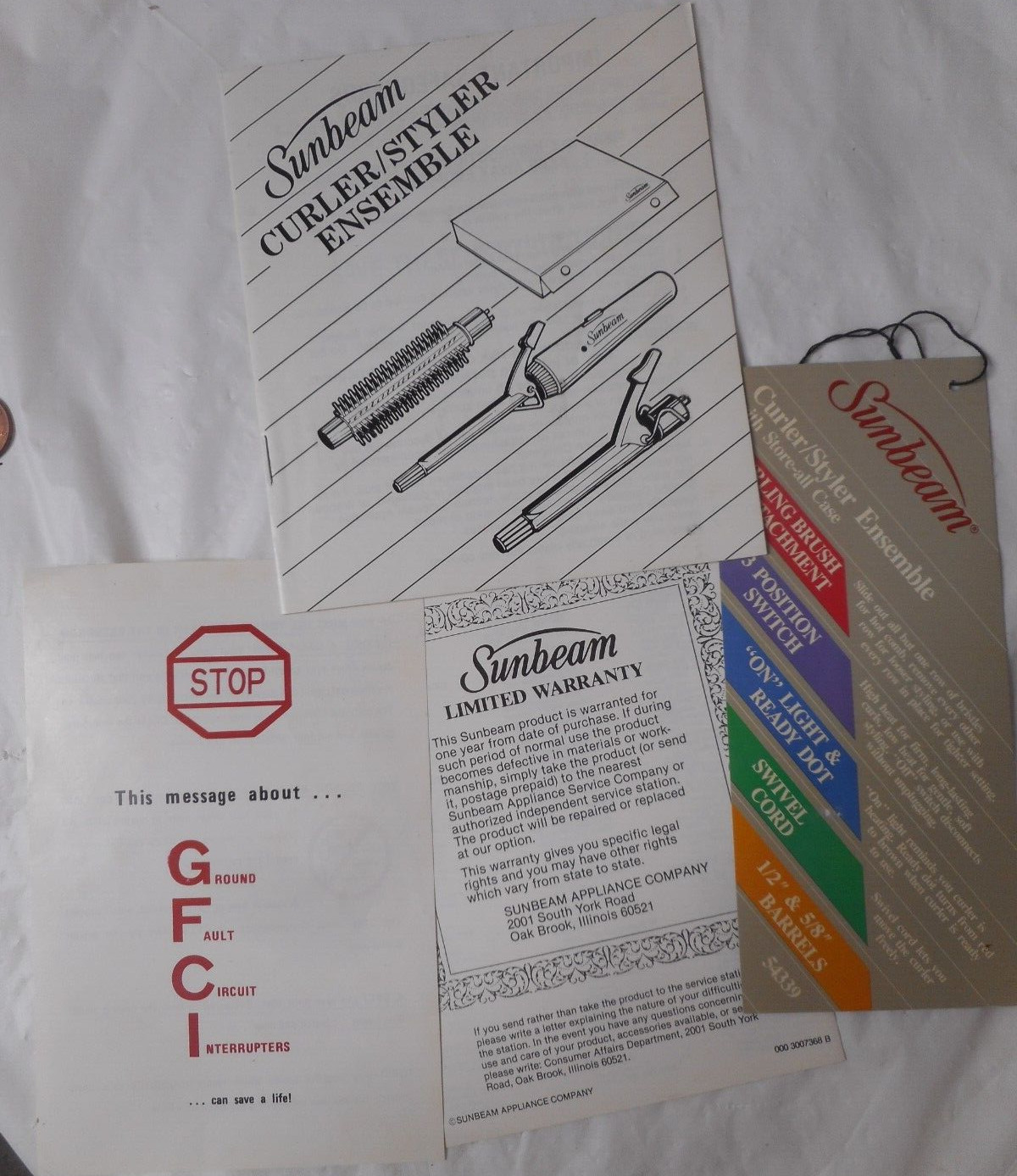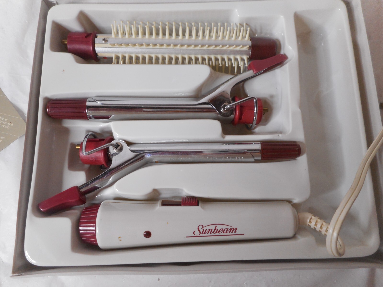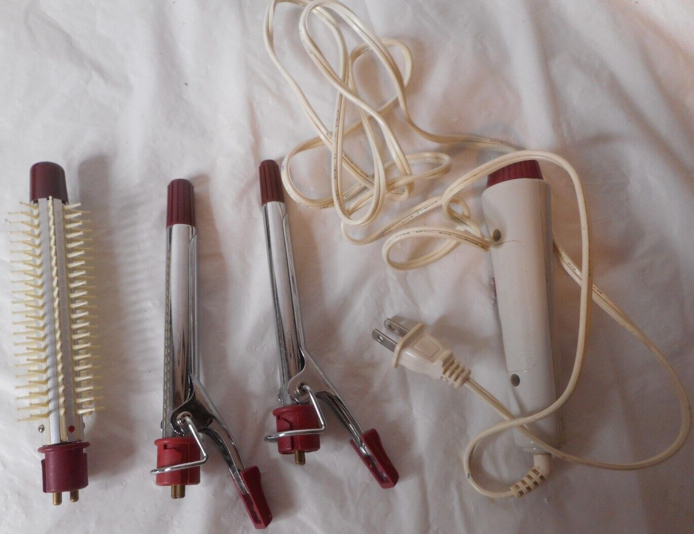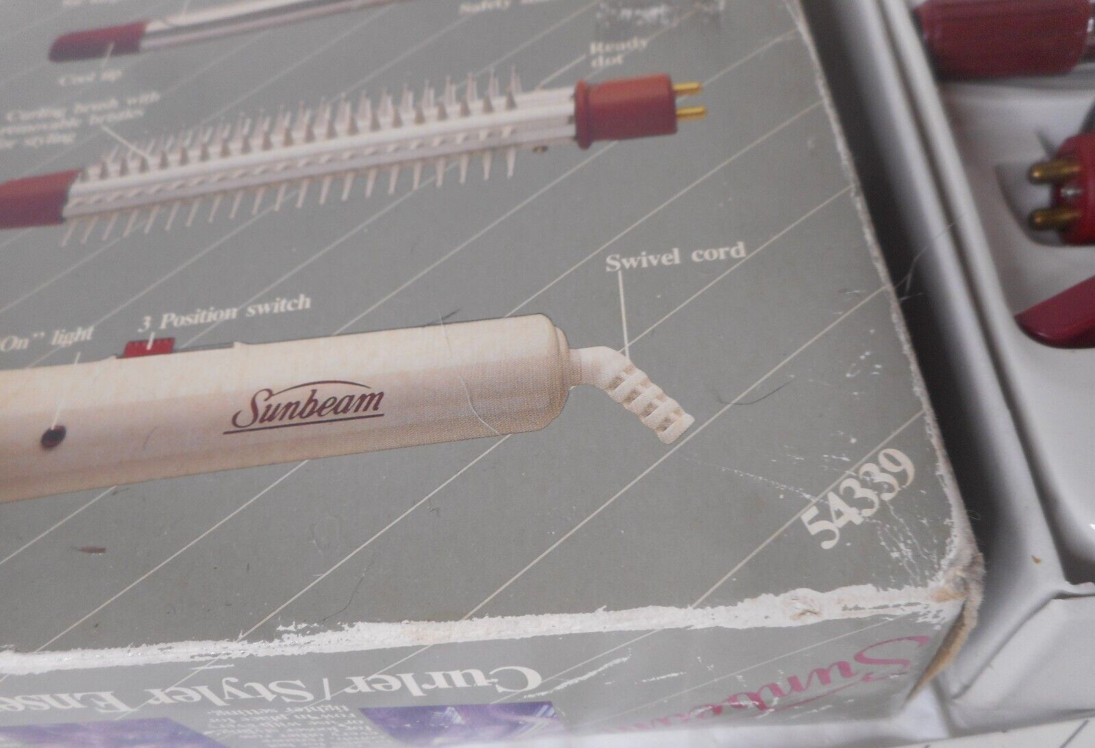 1984 Sunbeam 54339 Curler Styler Ensemble 2 barrels 1 bristle 1 Handle Case Box