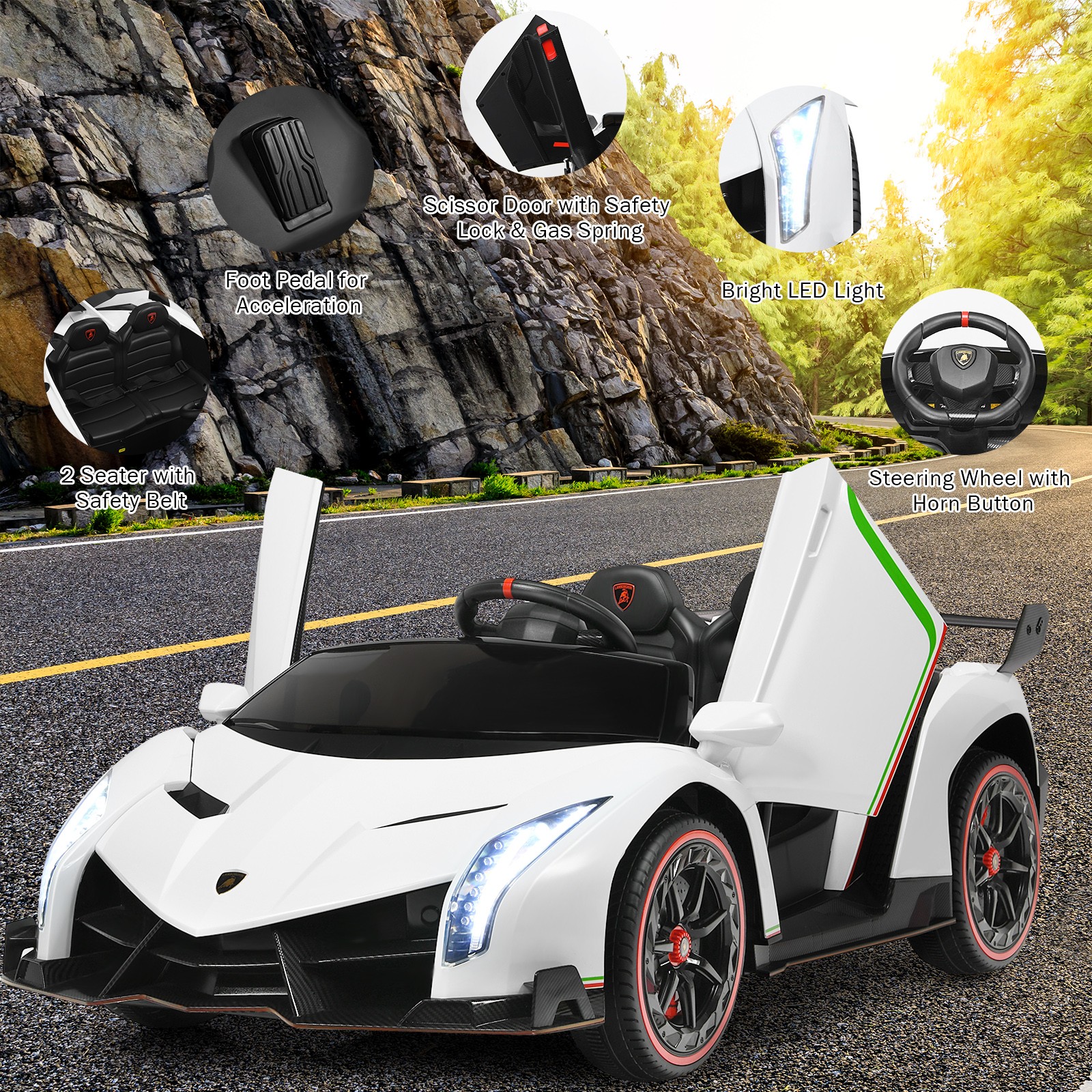 12V 2-Seater Licensed Lamborghini Kids Ride On Car w/ RC Swing Function White