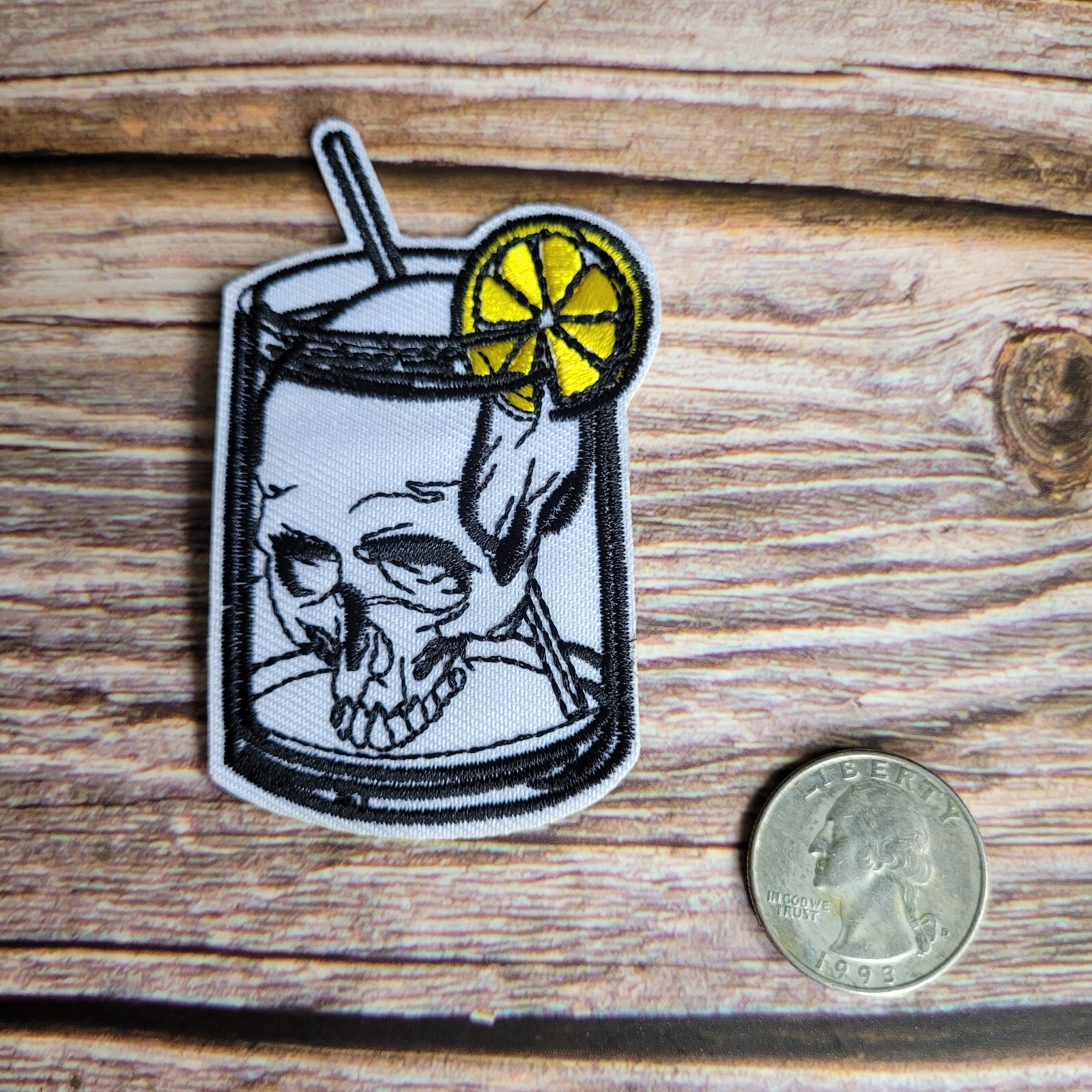 Skull In Cocktail Gothic Skeleton Punk Streetwear Embroidered Patch