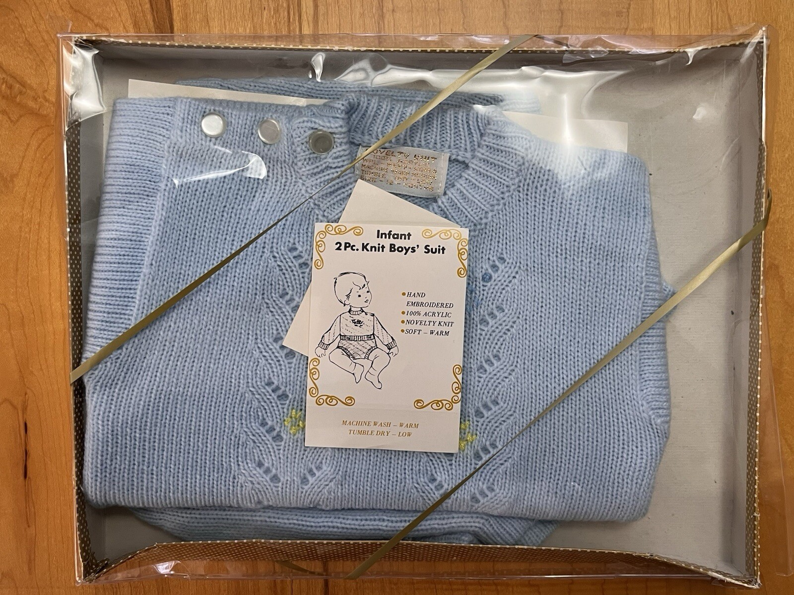 как выглядит Vintage Baby Infant Novelty Knit 12 Months 2 Piece Sweater Set Baby Blue W/Box фото