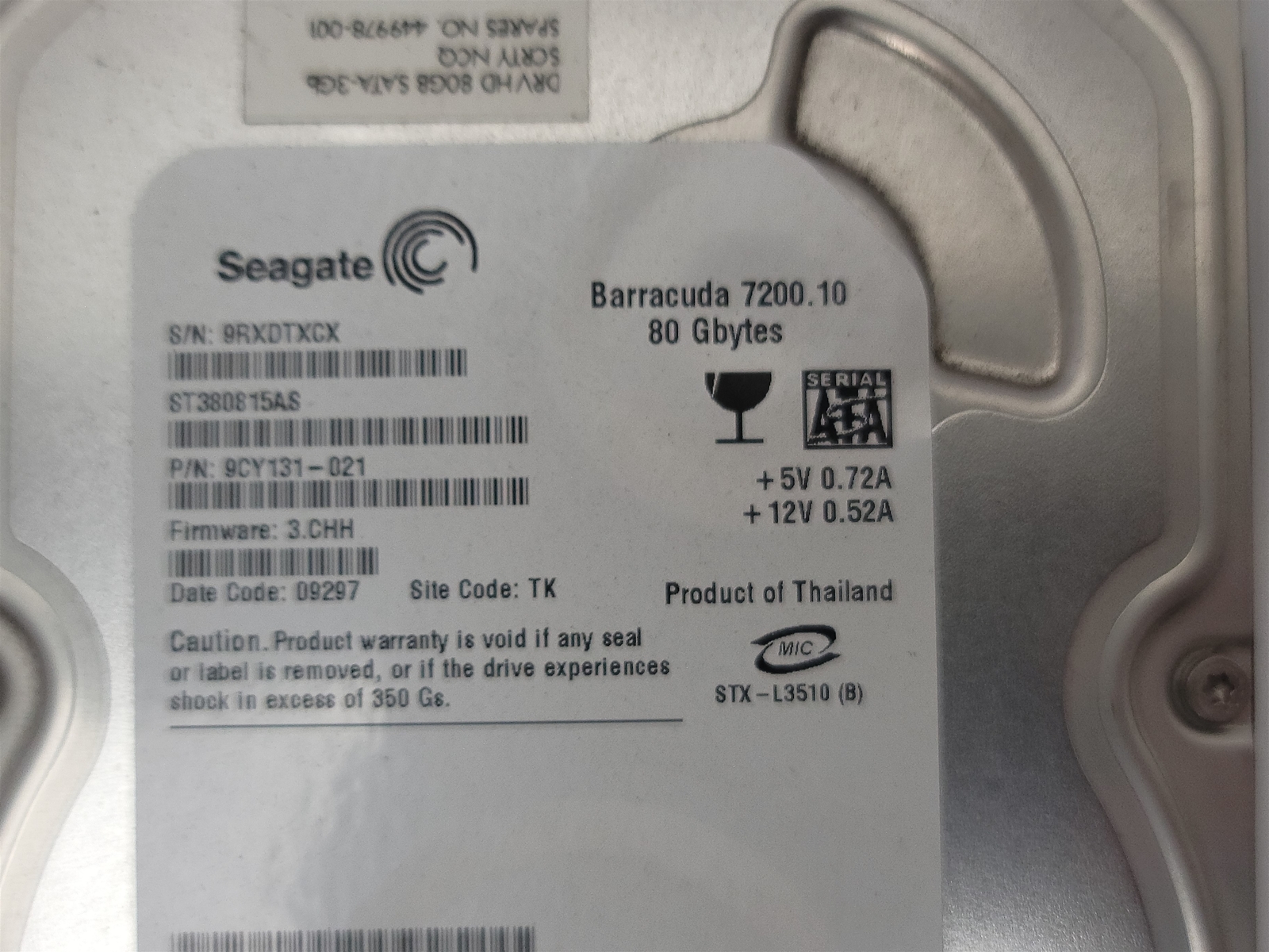 Seagate Barracuda ST380815AS HDD, 80 GB , SATA/ATA/ATAPI-7 - Tested w/pics