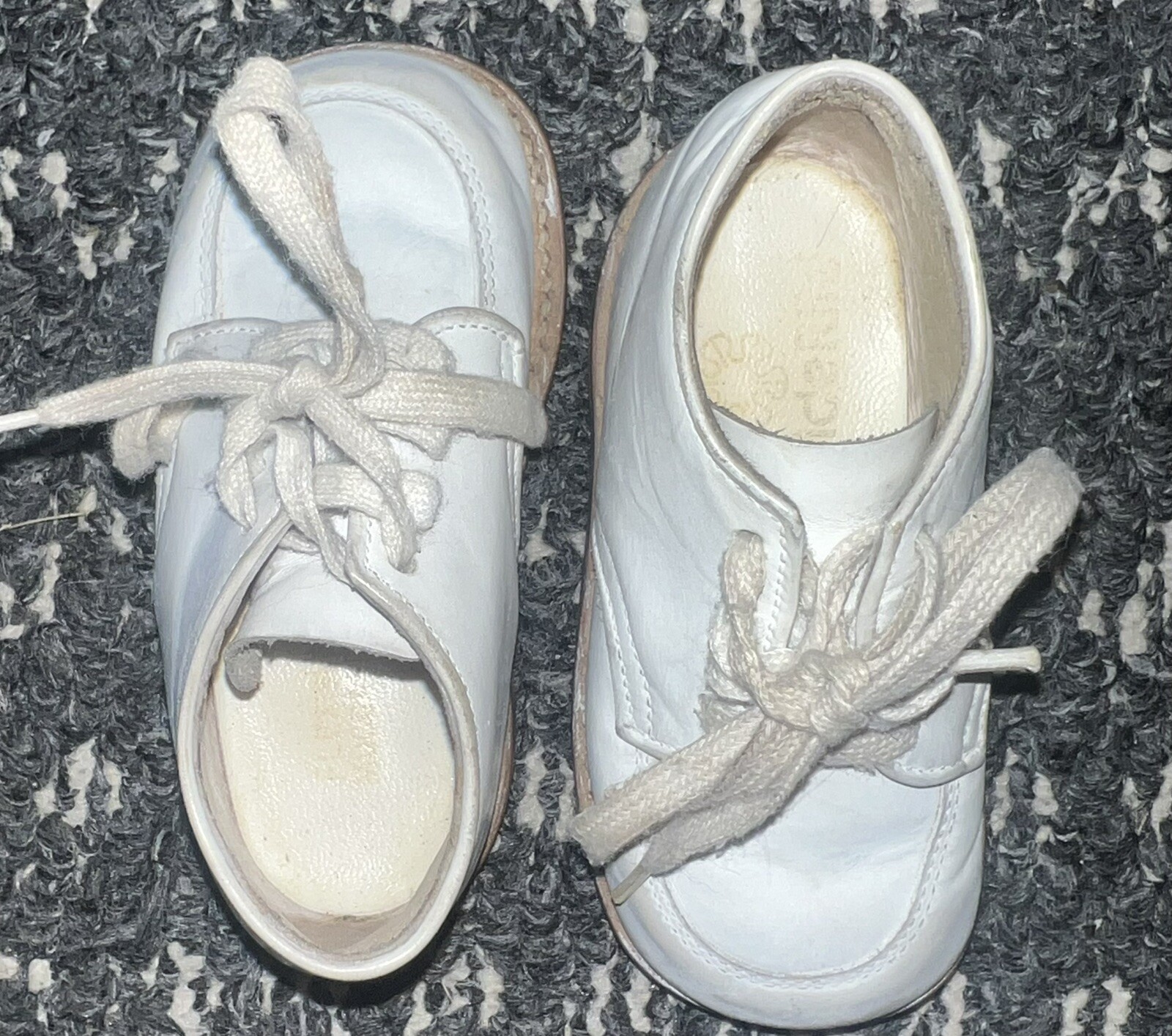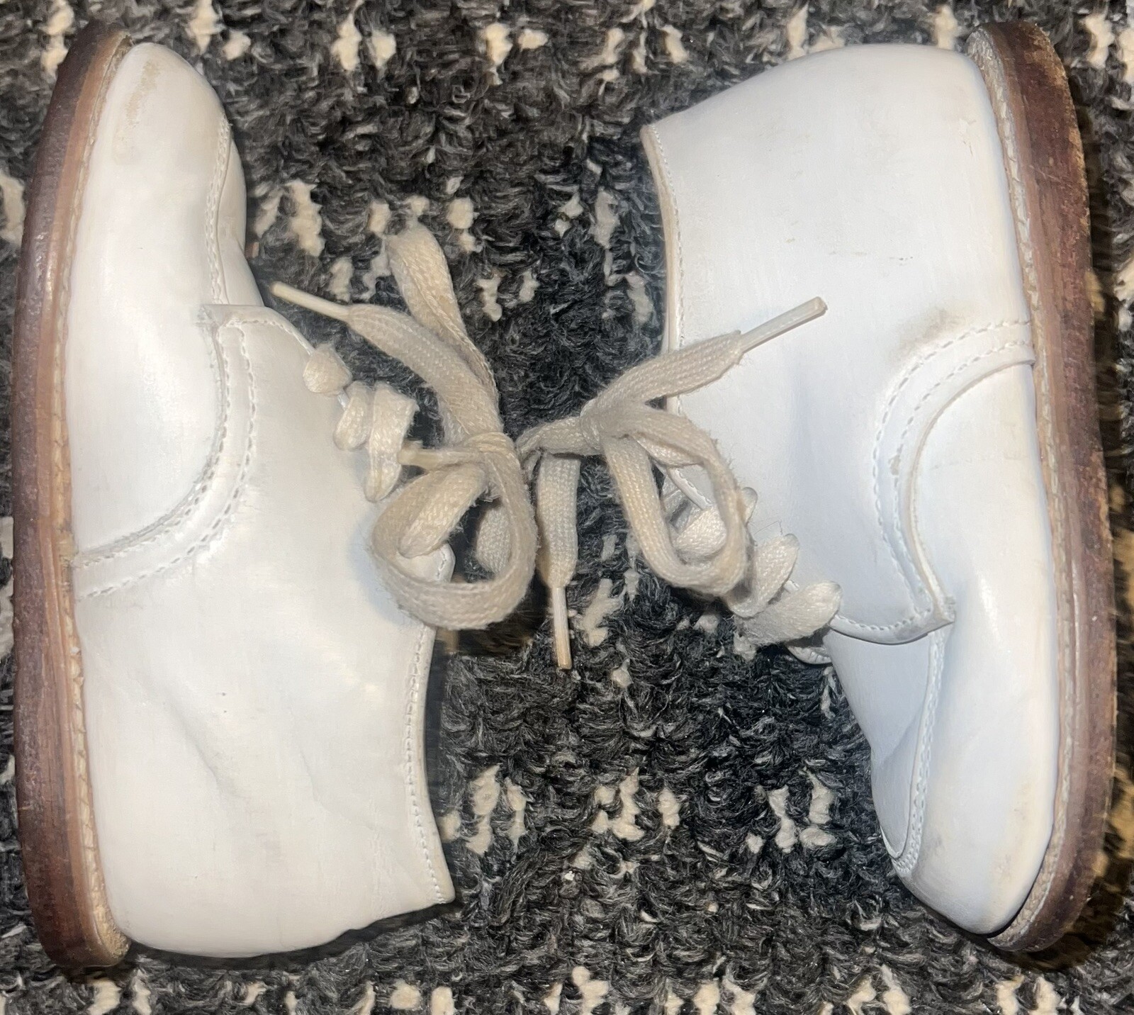 Vintage Hard Bottom Baby Shoes Stride Rite White Leather High Tops Lace Up 4D