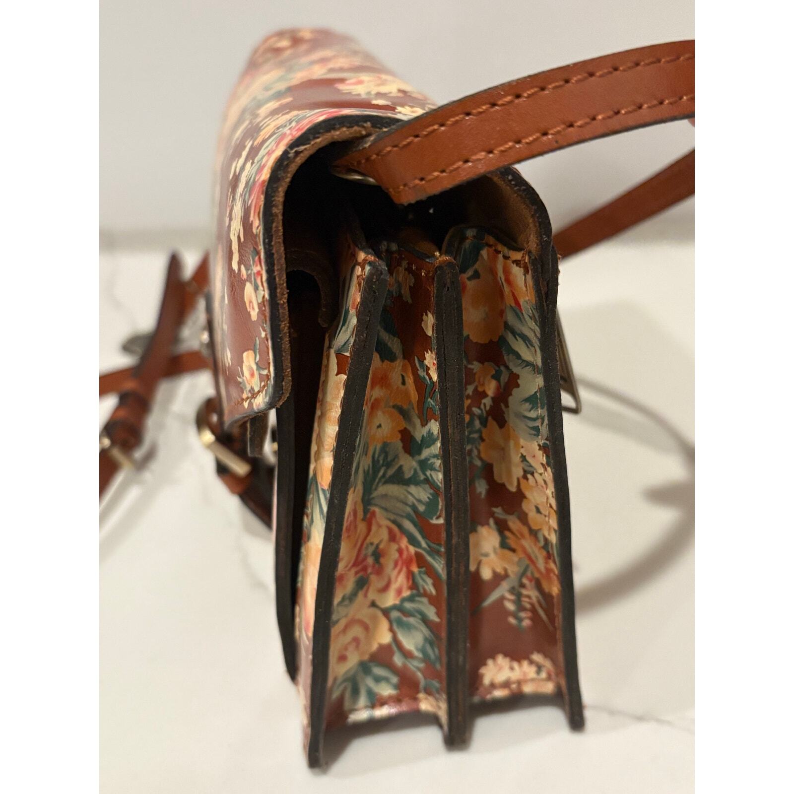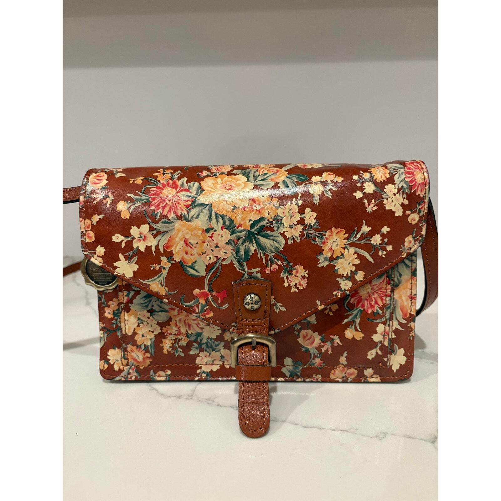 как выглядит Patricia Nash Vintage Botanical Crossbody Brown Yellow Floral 10th Anniversary фото