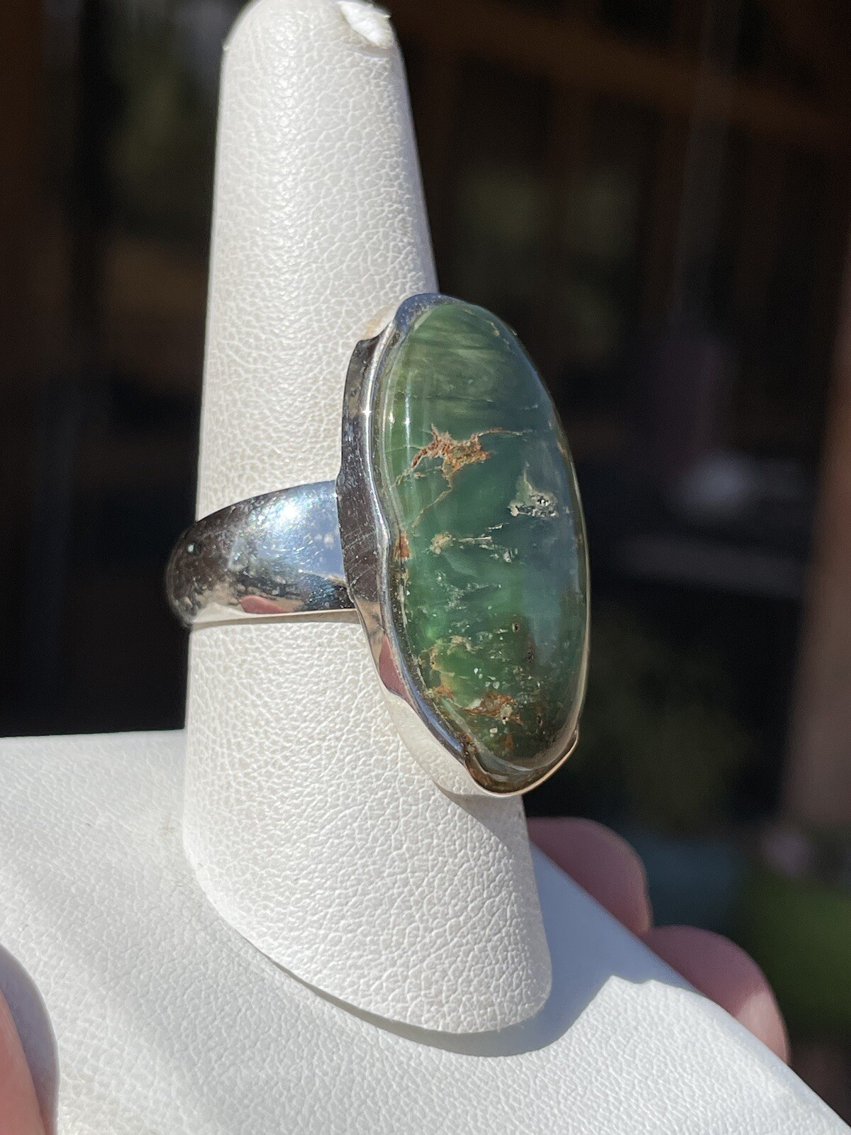 LG Oval Dark Green Variscite Cabochon Ring, Sterling Silver sz 8.5