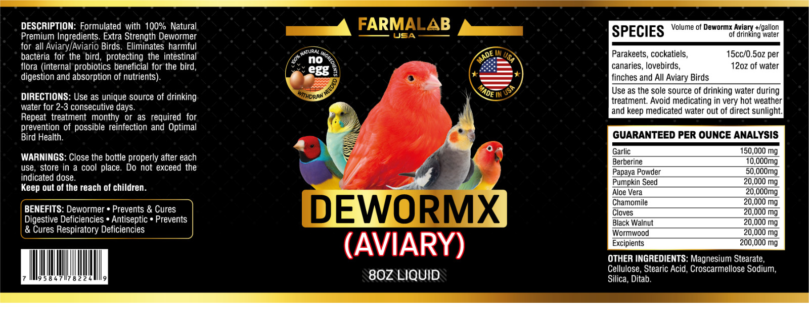 Farmalab Dewormer Parakeets, Cockatiels, Lovebirds, Finches, Rosellas, Quakers