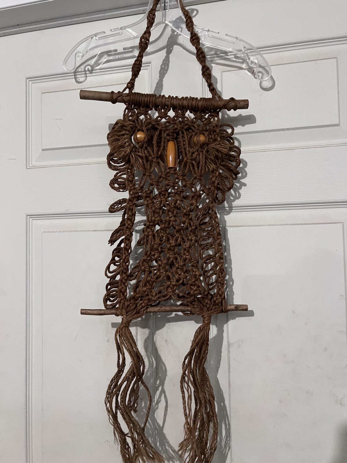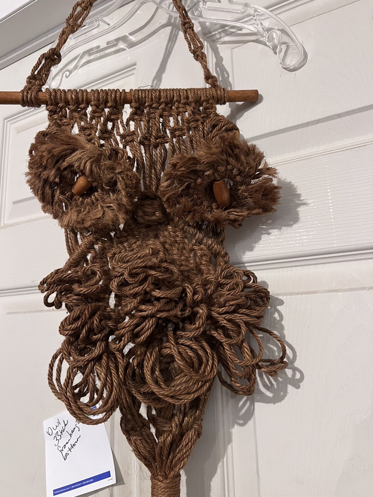 как выглядит Vintage 70s Hand Crafted Bohemian Jute Macrame Owl Wall Hanging MCM 33 фото