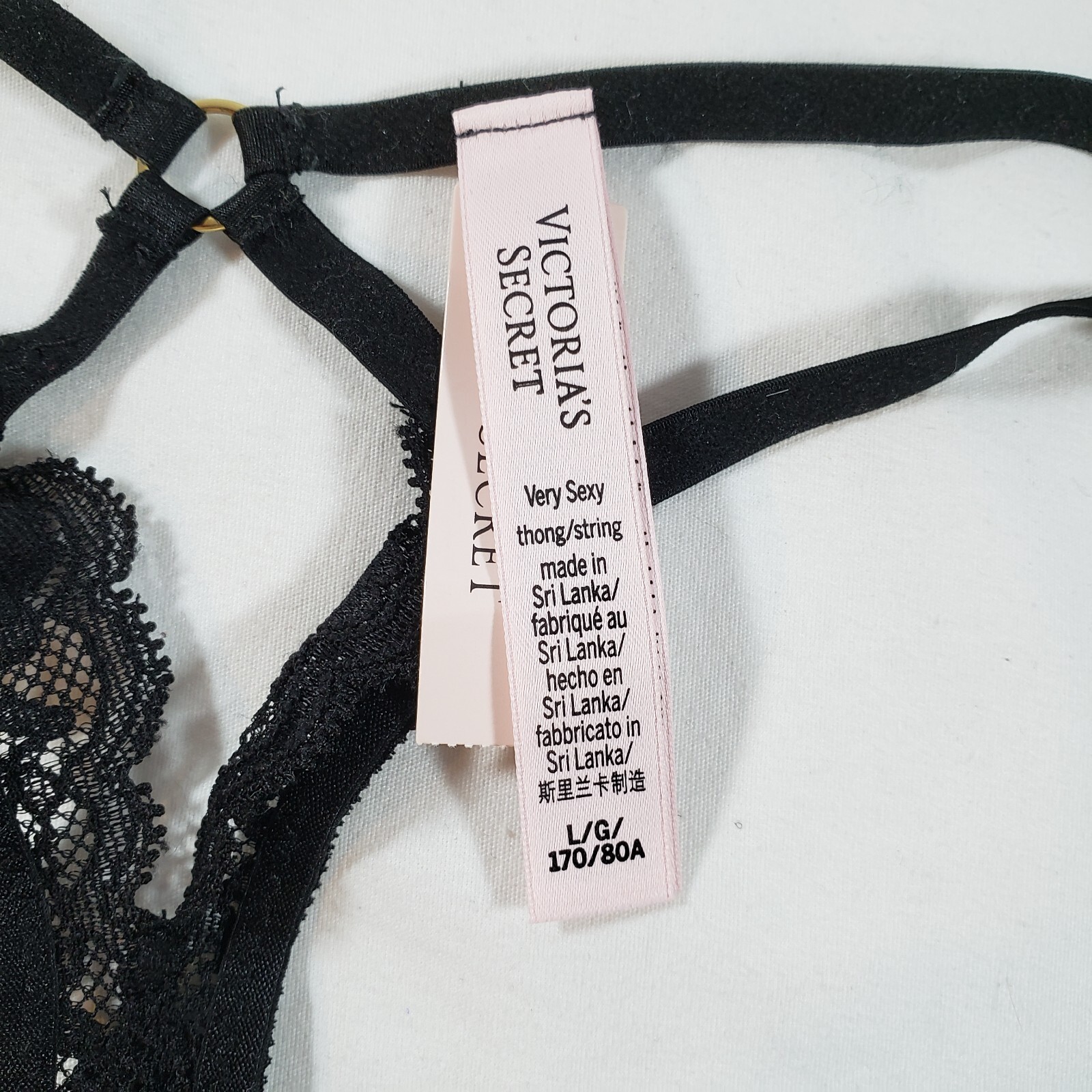 Victoria's Secret Lace Strappy Crotchless Thong Large Black