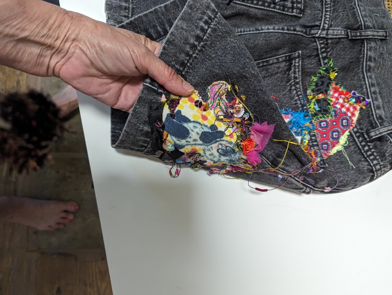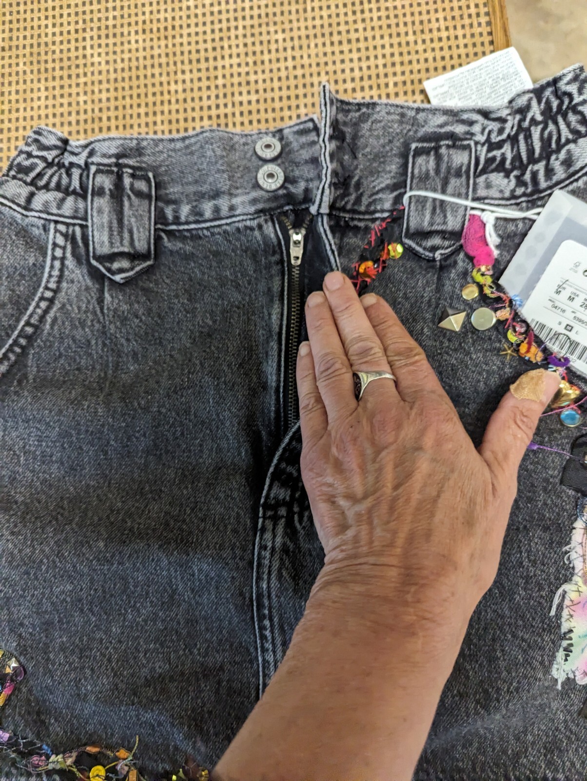как выглядит High Waist Denim Vintage Appliques Skirt Hippie Size M New фото