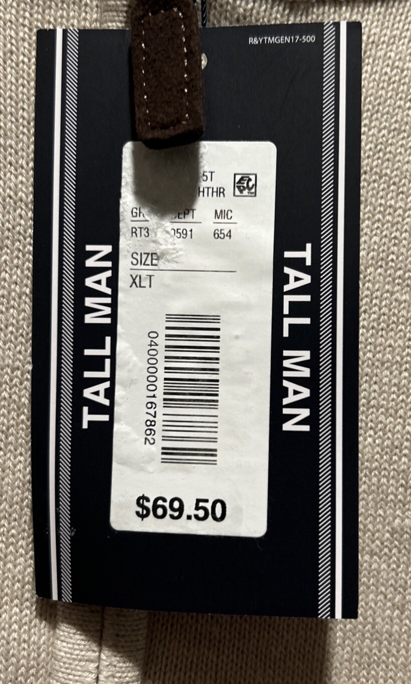 NWT Men's Roundtree Yorke Mock Turtleneck LS Sweatr XLT Oatmeal Heather 69.50
