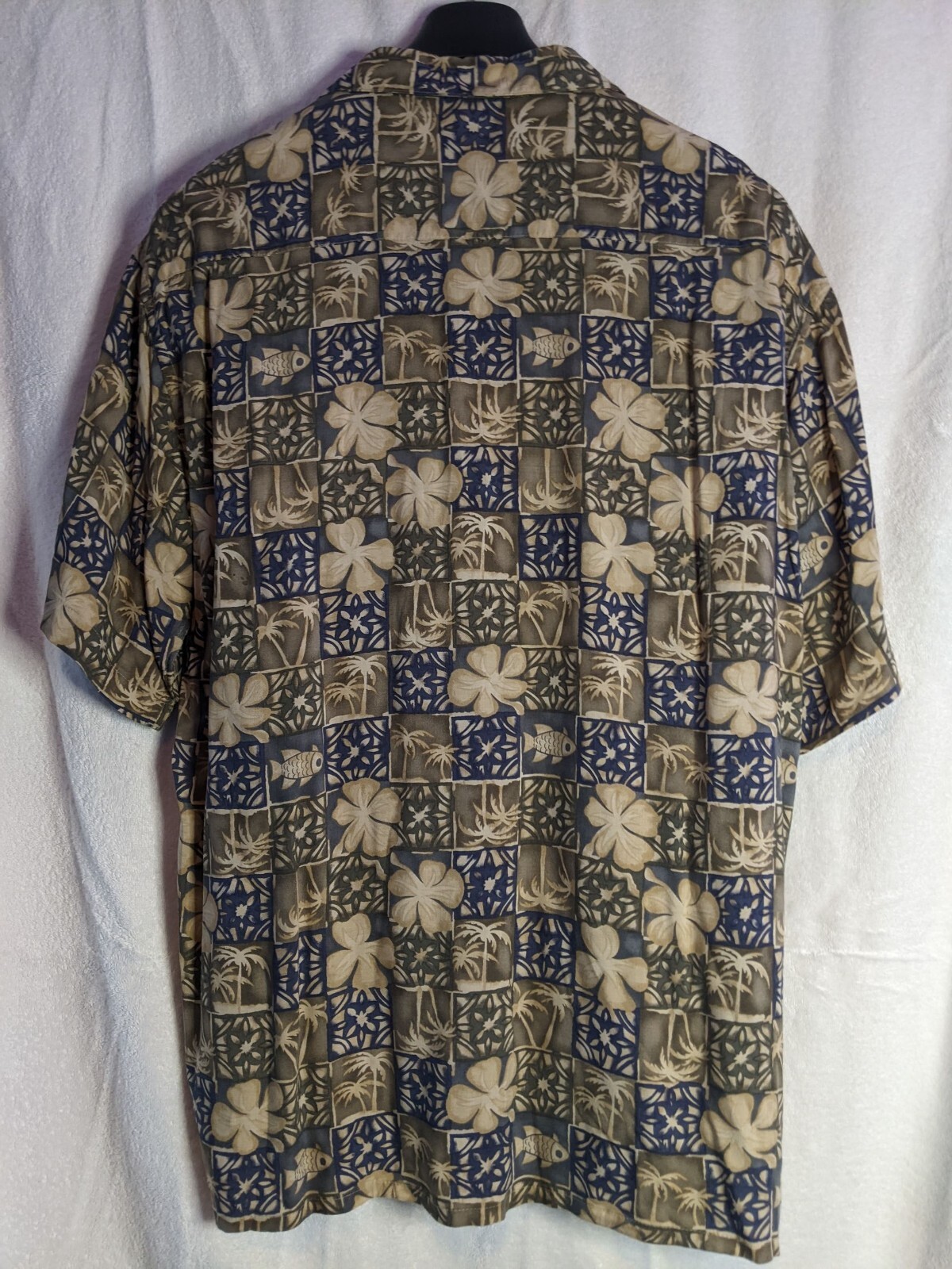как выглядит Vintage Izod Hawaiian Shirt 21-6 Fish and Flowers L фото