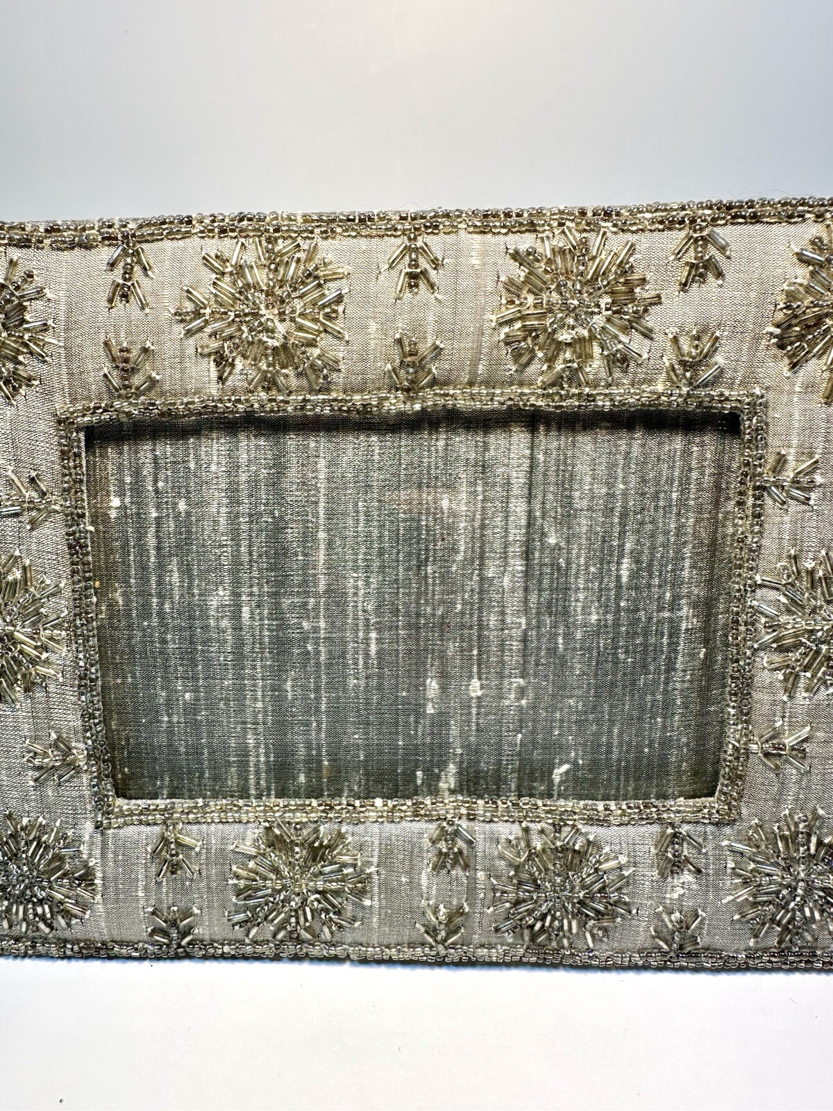 как выглядит Grey Hand Beaded Silk Fabric Picture Frame - Fits 3.5x5in Photo фото