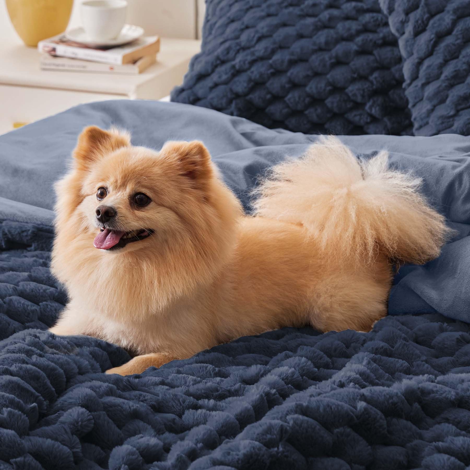 Fluffy King Size Comforter Set - Navy Blue Fleece Soft Comforter for King Siz...