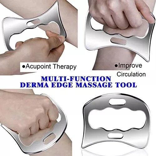 BYYDDIY 2 in 1 Stainless Steel Muscle Scraper Tools Set Gua Sha Massage Black