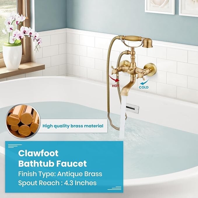 Antique Brass Clawfoot Tub Faucet Wall Mounted Bathtub Filler Tap Hand Shower
