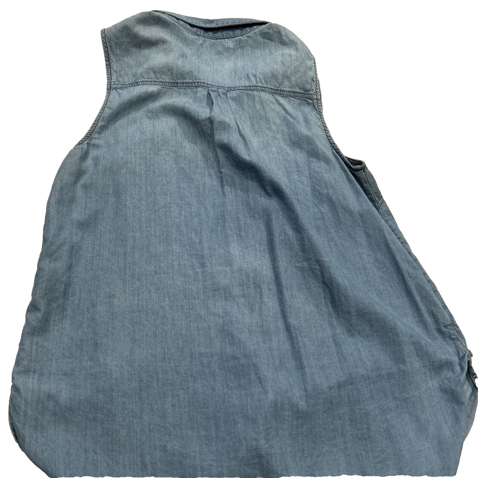 Justfab Medium Chambray Jean Wash Denim Sleeveless Tank Full Button 2 Pockets