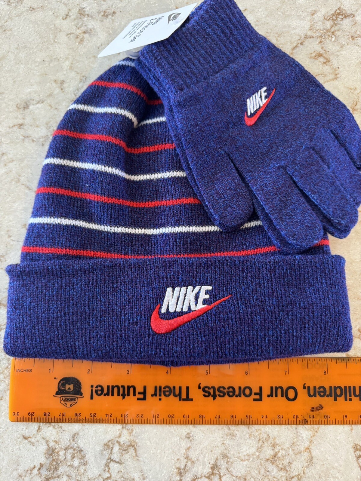 NWT NIKE Boys Youth Game Royal Fold over Beanie Hat/Gloves Set Blue
