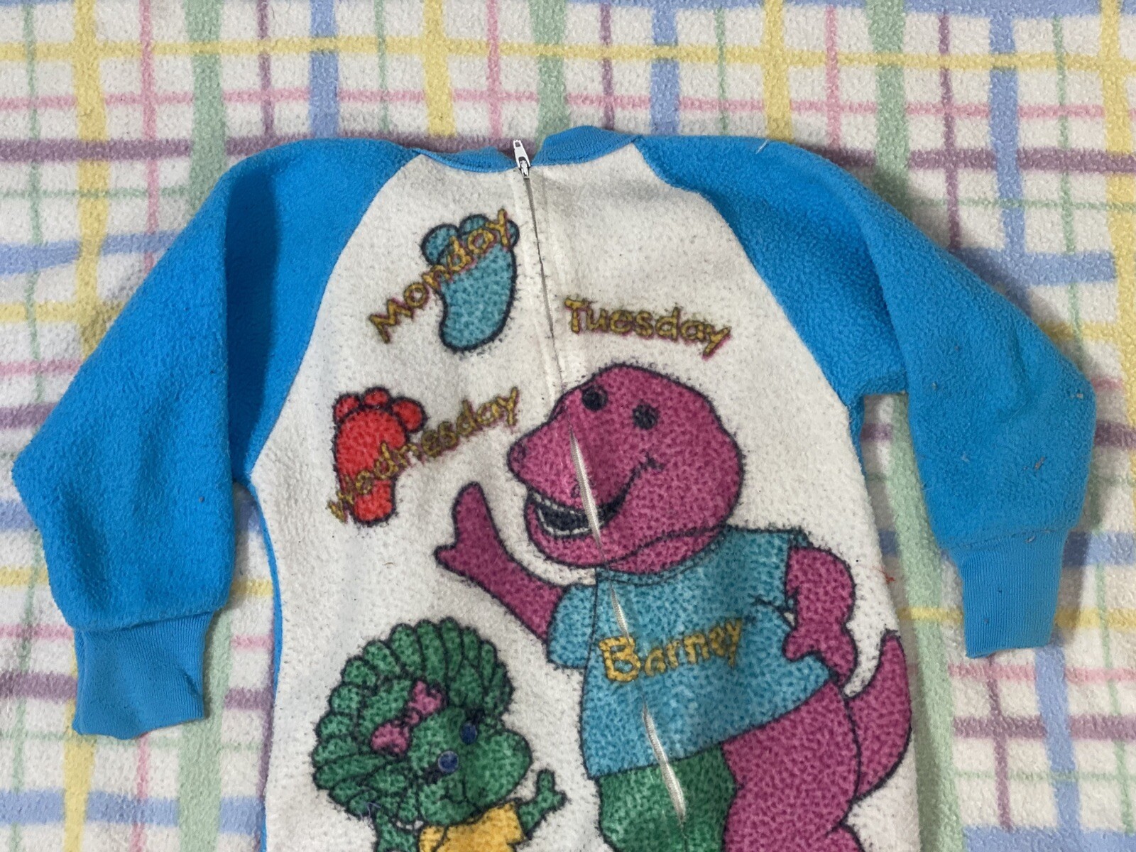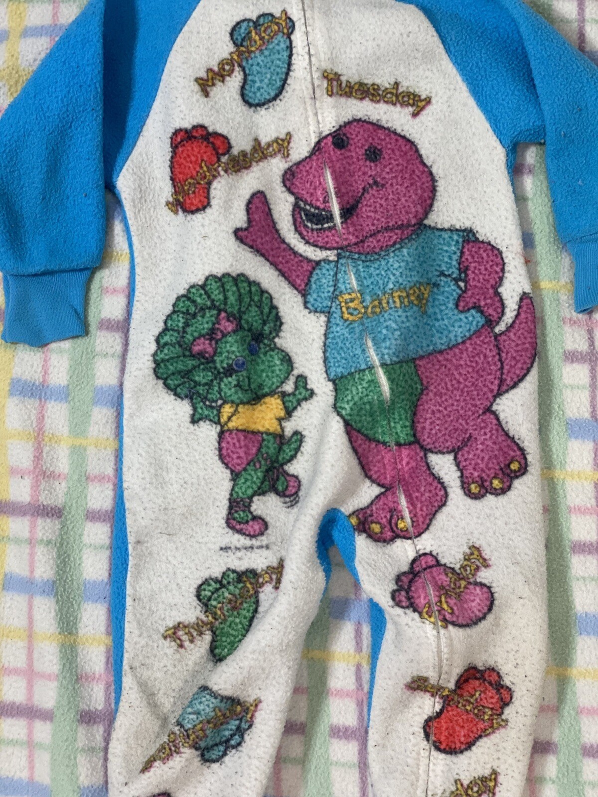 Rare Vintage 1992 Barney The Dinosaur Footie Pajamas One Piece Zip Up 2T