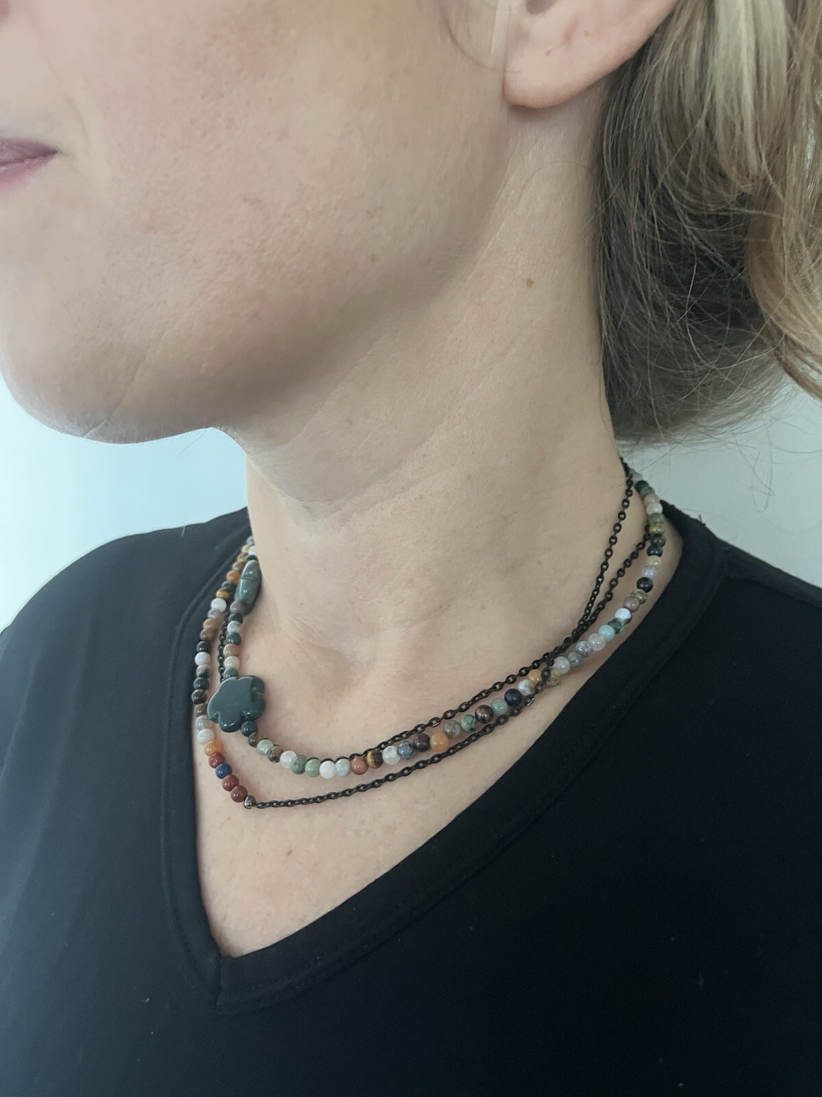 EYEGLASS Chain/Jewelry/Necklace/Bracelet/Real Stone Beads/Black S.Steel/BOHO/